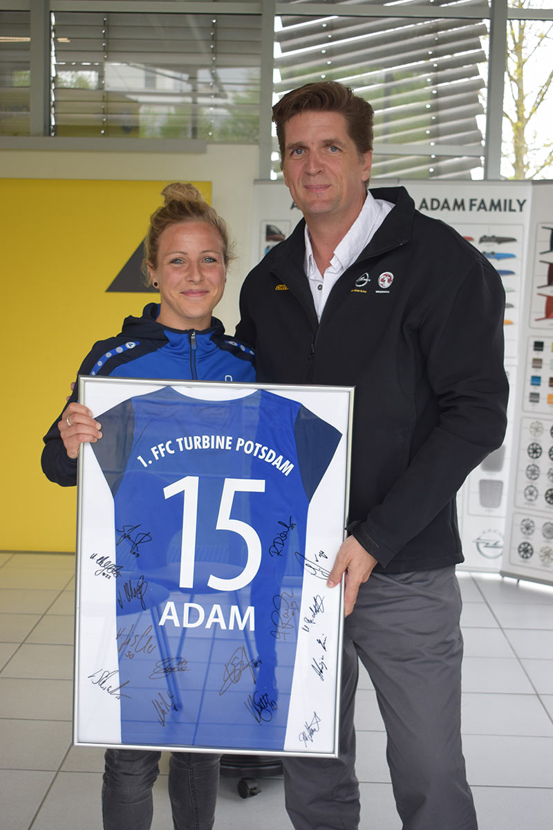 Jeder ADAM ist so individuell, wie seine Spielerin die ihn fährt, denn diese konnten sich ein individuelles Design aussuchen, damit sie auf den Potsdamer Straßen eine schöne sowie sportliche Figur machen werden. Werksleiter Fernando Andreau hieß die Turbinen im Namen der 1400 Mitarbeiter vor Ort, die stündlich 21 Fahrzeuge fertig stellen, herzlich willkommen und freute sich, dass der weite Weg aus Potsdam auf sich genommen wurde, um zu beobachten mit wie viel Herzblut ein Opelfahrzeug gebaut wird. Auch Renzo Schachtschneider, der die Idee gemeinsam mit Frau Herzog ins Leben gerufen hatte, sagte: „Ich freue mich sehr, dass wir den Bezug zum Hersteller herstellen konnten. Es ist wichtig, dass die Spielerinnen mal einen Eindruck davon bekommen, wo ihr Fahrzeug herkommt, um auch Emotionen mit dem Wagen, den sie fahren, zu verbinden.“