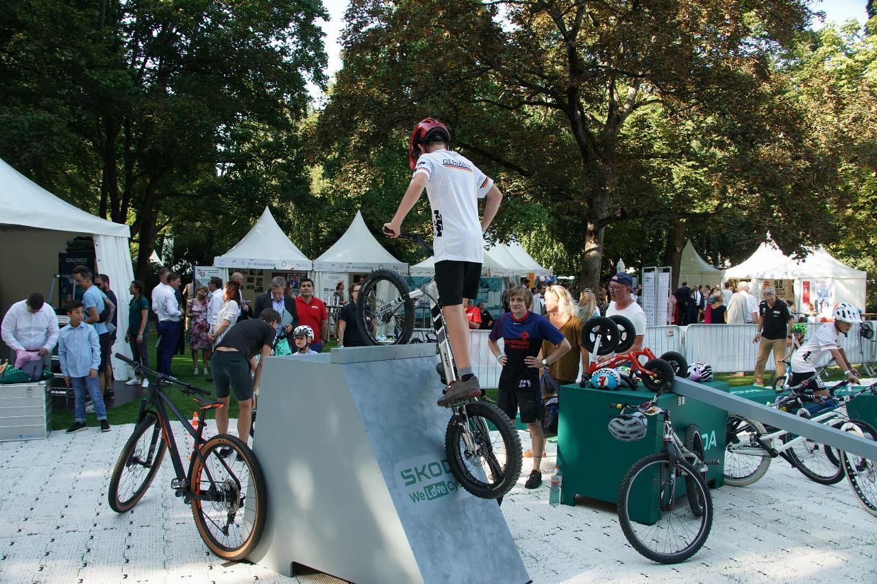 Skoda hat sich am vergangenen Wochenende am Bürgerfest des Bundespräsidenten beteiligt und Geld für den guten Zweck gesammelt. Im Park von Schloss Bellevue konnten die Besucher am Stand des Autoherstellers in die Pedale fest montierter Fahrräder treten. Pro gefahrenen Kilometer spendete Skoda zehn Euro an die karitative Radveranstaltung Tour der Hoffnung, einer Initiative für krebskranke Kinder. Mit knapp 500 zurückgelegten Kilometern kamen so 5000 Euro zusammen. (aum)