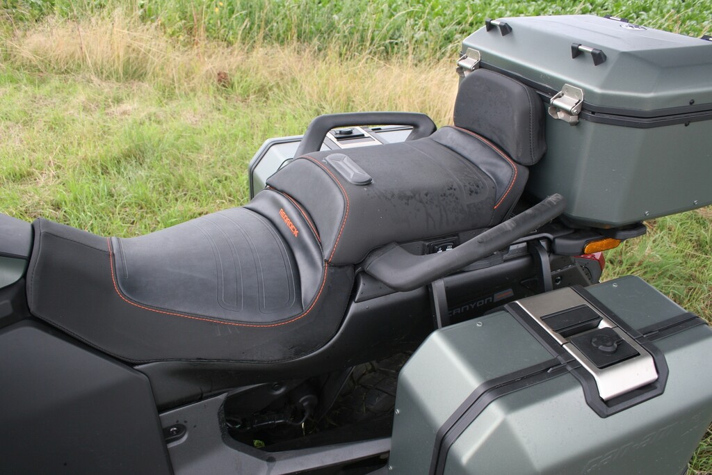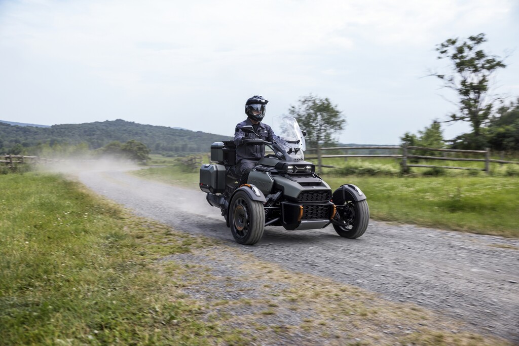 Der Canyon bietet mit 16 Zentimetern deutlich mehr Bodenfreiheit als der etwas längere Spyder und offeriert üppige 260 bzw. 235 (hinten) Millimeter Federweg. Die Bereifung fällt grobstolliger aus, ohne den Komfort auf Asphalt zu beeinträchtigen, der Lenker ist höher gesetzt. Als Antrieb dient weiterhin der 1,33 Liter große Dreizylinder von Rotax mit 115 PS (85 kW) und 130 Newtonmetern Drehmoment. Die Fahrstabilität leidet trotz der etwas größeren Vorderräder, der Adventure-Reifen und der höheren Sitzposition nicht. Ein spezieller Rallye-Mode bremst die Einsatzfreudigkeit der Assistenzsysteme für Fahrten jenseits befestigter Straßen etwas.