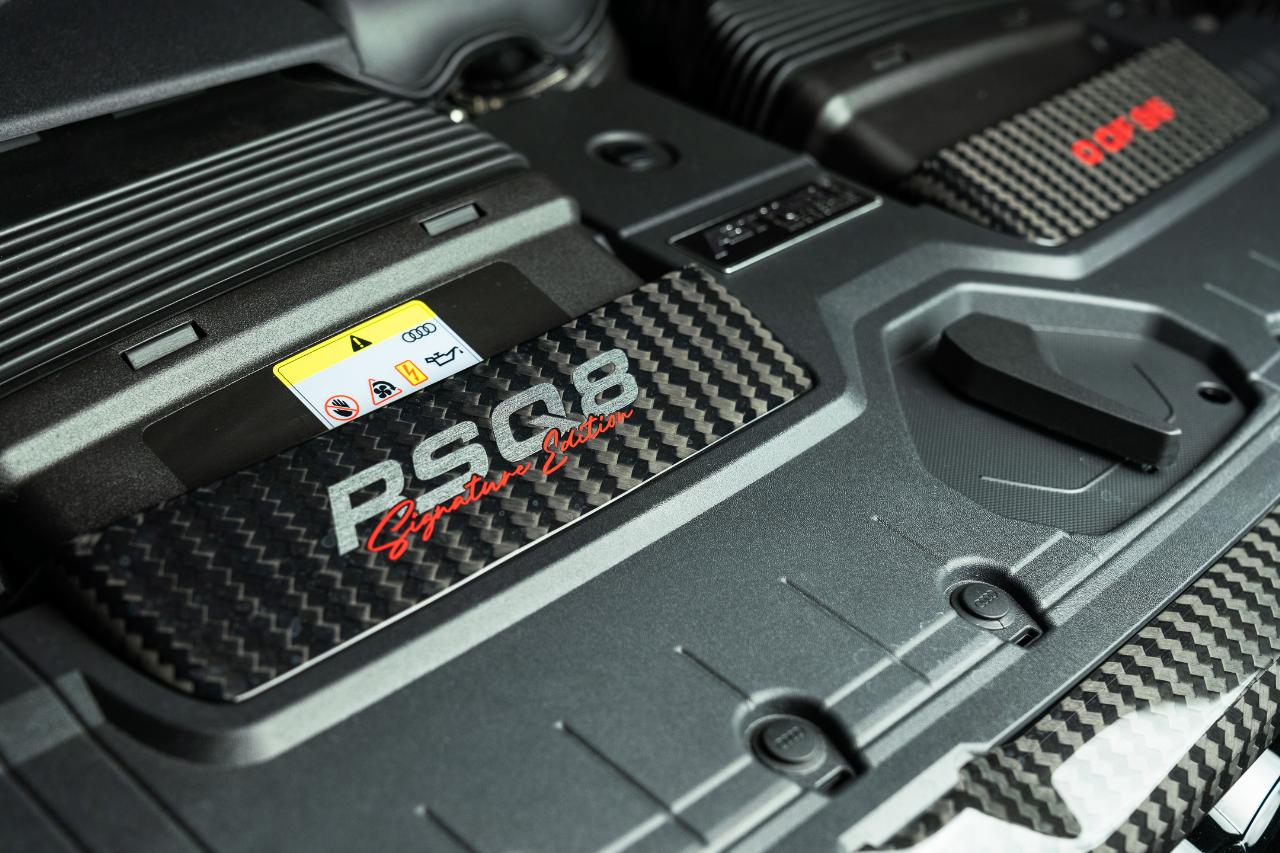 Der RSQ8 Signature Edition verwirklicht auch optisch alles, was Abt kann. Es gibt ihn nur in schwarz, die Innenausstattung wird akzentuiert durch großzügige Verwendung von Kohlefaser, Leder und echtem Alcantara sowie durch liebevolle Stickarbeiten. Höhepunkt ist eine Zeitkapsel in der Mittelkonsole, in die ein Fragment der ersten Siegertrophäe von Johann Abt eingearbeitet ist.