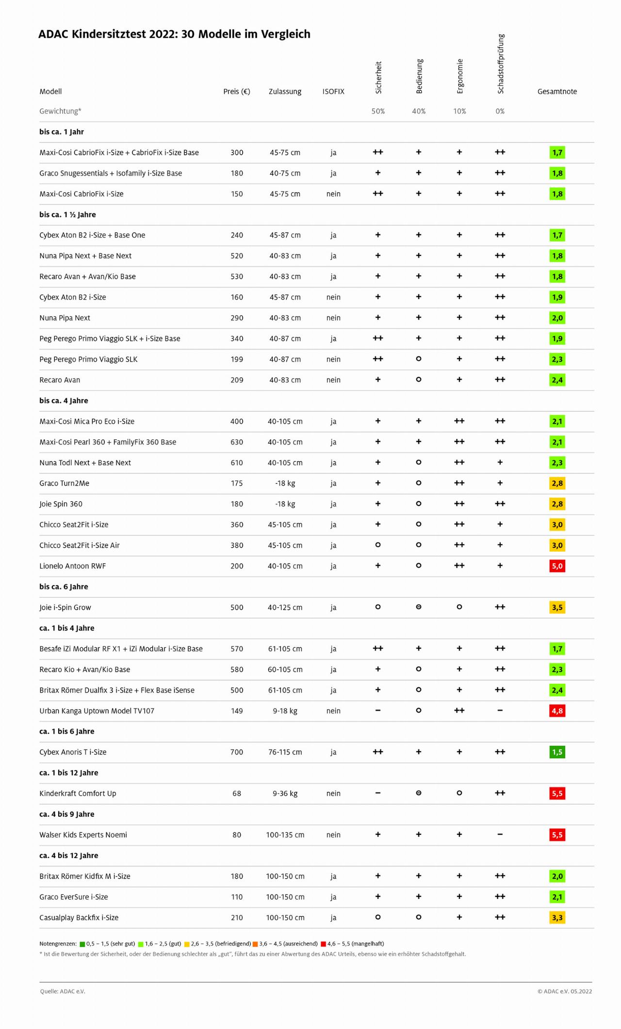 Produkte rund ums FahrzeugUnternehmenADACSicherheit & VerkehrtestKindersitz2022