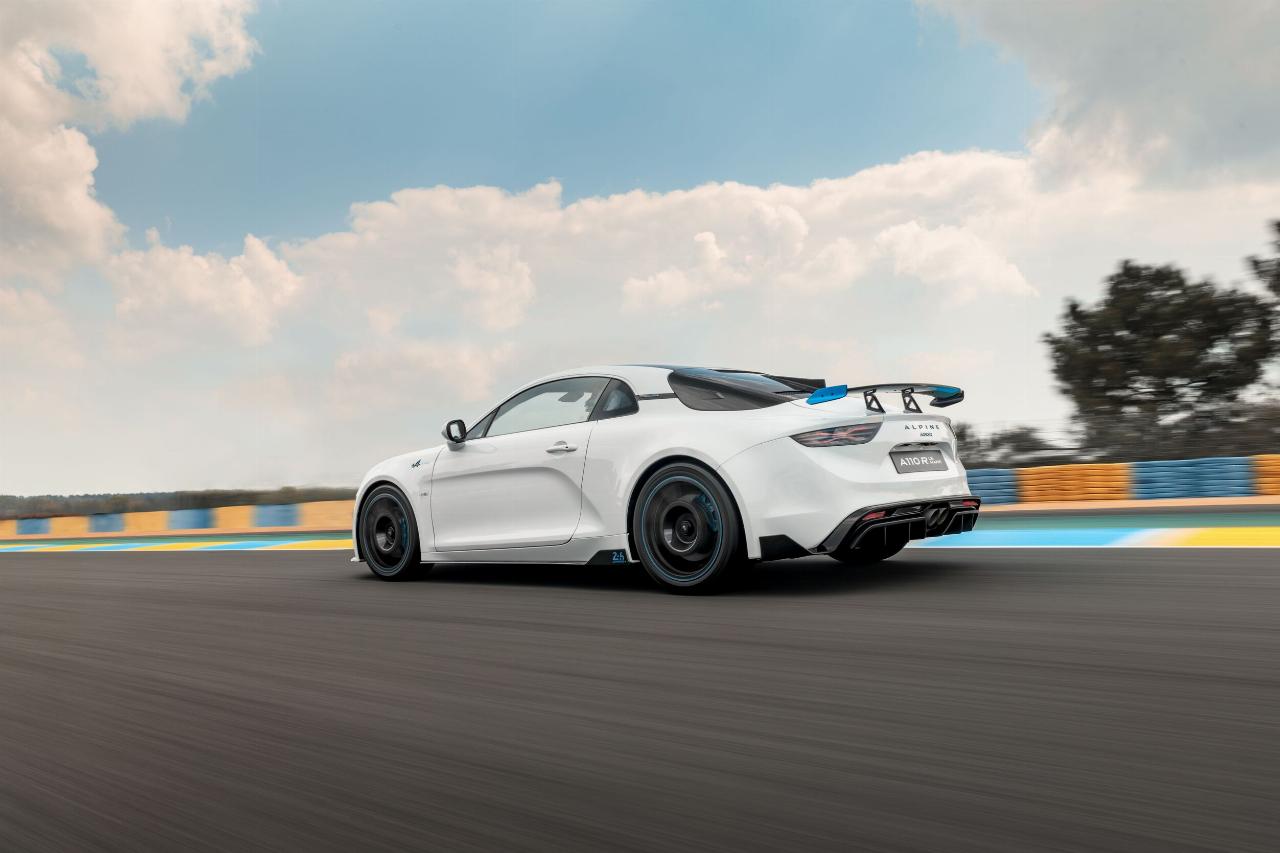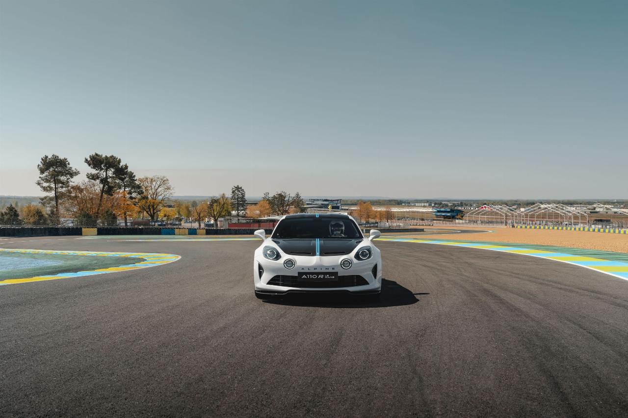 Das Sondermodell basiert auf dem A 110 R und verfügt über identische Karbonkomponenten sowie ein spezielles Fahrwerks-Setup. An den Frontspoilern, Seitenschwellern und Mikrofaser-Kopfstützen der Schalensitze findet sich die offizielle Le-Mans-Signatur. Als weitere Referenz an den Langstreckenklassiker ist das Layout der Rennstrecke in der Sonnenblende eingraviert. Jedes Fahrzeug trägt in der Mittelkonsole eine nummerierte Plakette.