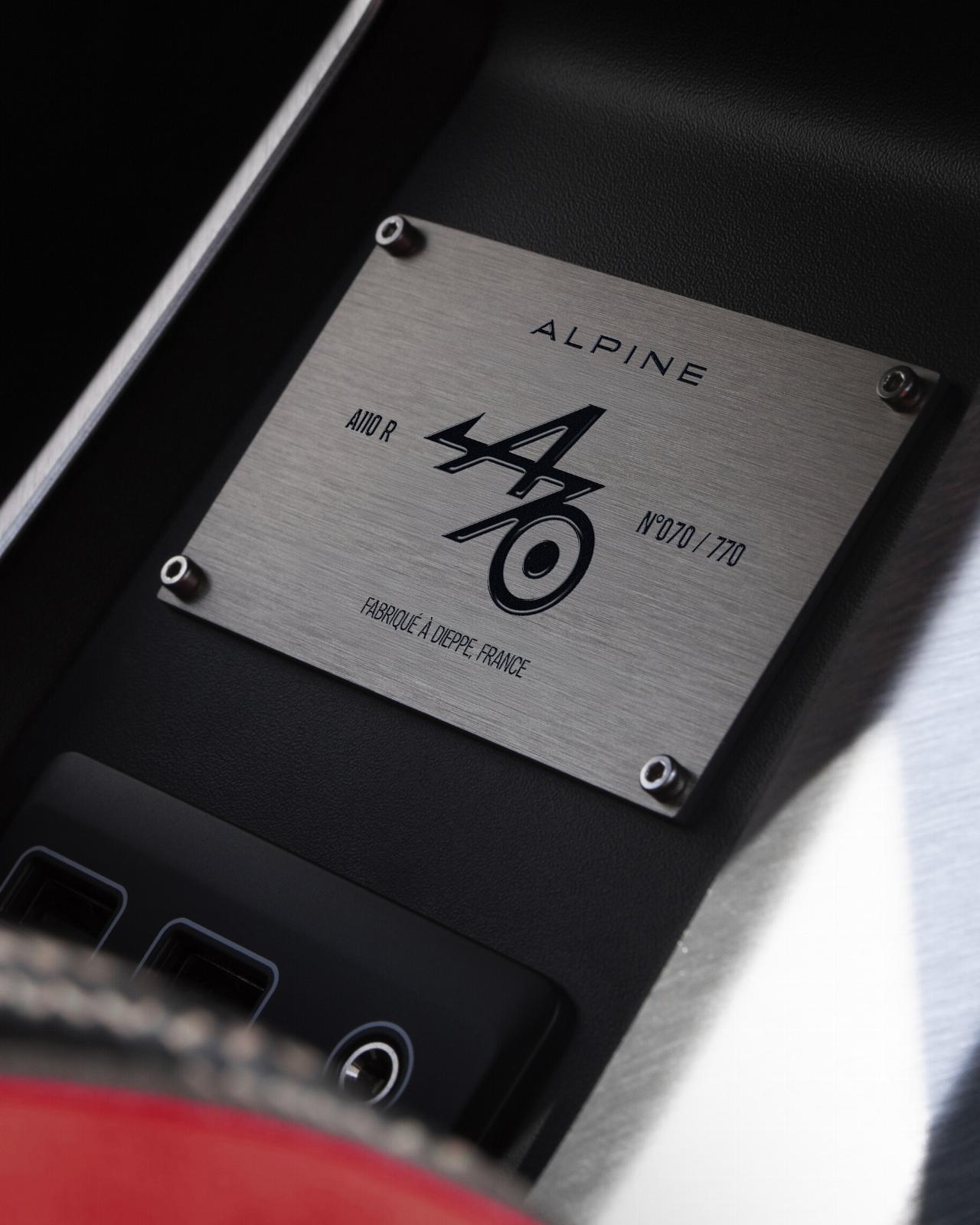 Die Karosserie des 300 PS (215 kW) starken Alpine A 110 R 70 sowie die Räder bestehen aus Carbonfaser. Wählbar sind zehn verschiedene Karosseriefarben und vier Ausstattungsvarianten aus dem Individualisierungsprogramm. Zu den weiteren Merkmalen zählen die Michelin-PS-Cup-2-Reifen, ein Akrapovic-Auspuff und sieben mögliche Farben für die Brembo-Bremssättel. Das „70th Anniversary“-Logo an Radhäusern, Einstiegsleisten und Kopfstützen sowie die nummerierte Plakette weisen die Exklusivität aus. An der Fahrzeugsäule und den Türinnenseiten findet sich das Monogramm der französischen Flagge. Innerhalb der Sonderserie gibt es noch jeweils 70 Exemplare in Caddy Blau, Arktis Weiß und Seismic Rot. Sie sind eine Hommage an den dreifarbigen A 106, der 1955 als erstes Serienfahrzeug der Marke präsentiert wurde.