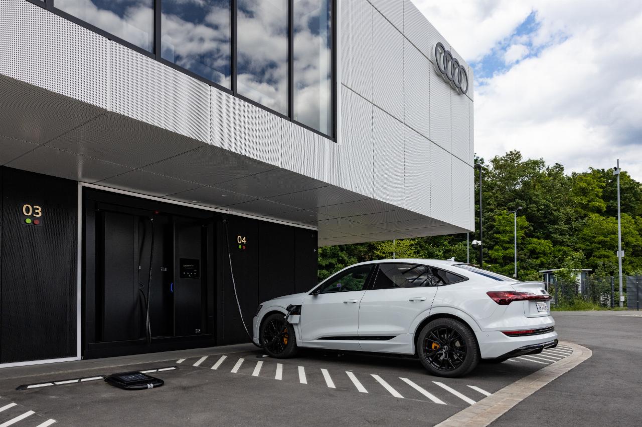 Die im Vergleich zu Nürnberg kompaktere Variante des Audi Charging Hub in Zürich basiert ebenfalls auf dem Baukastenprinzip, nach dem sich verschiedene Größen eines Ladehubs mit und ohne Lounge realisieren lassen. (aum)