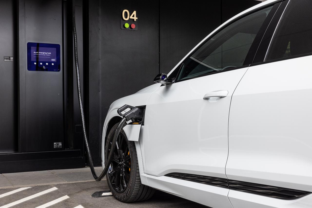 In Zürich wird Audi einen nochmals modifizierten Schwenkarm einsetzen, mit dem sich die Autos über die gesamte Breite der einzelnen Stellflächen barrierefrei mit bis zu 320 kW laden lassen. Die Bediendisplays an den Ladepunkten sind höhenverstellbar und die Wege zwischen Cube und Fahrzeug für Rollstuhlfahrer ausreichend breit gestaltet. Zudem weisen zwei 55 Zoll große Bildschirme unter anderem auf die umfangreiche Servicelandschaft rund um den Hub hin – dazu zählen zahlreiche Food- und Fitnessangebote sowie ein E-Bike Sharing in unmittelbarer Nähe.