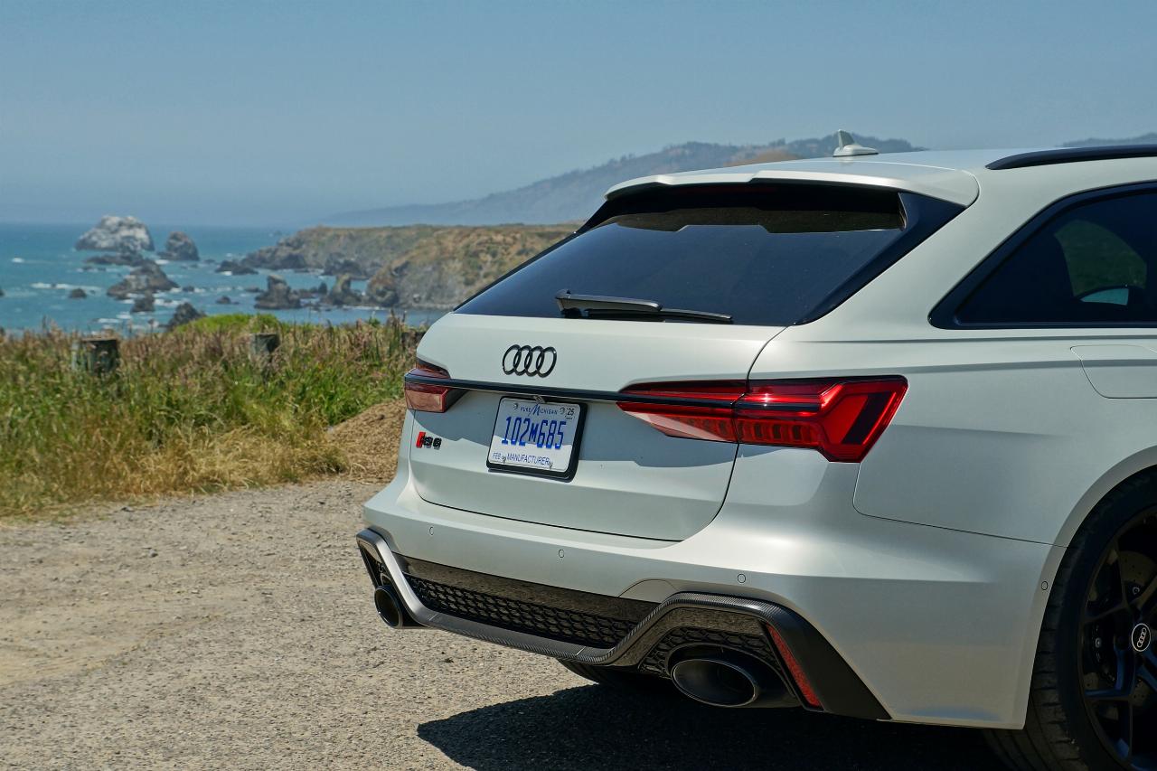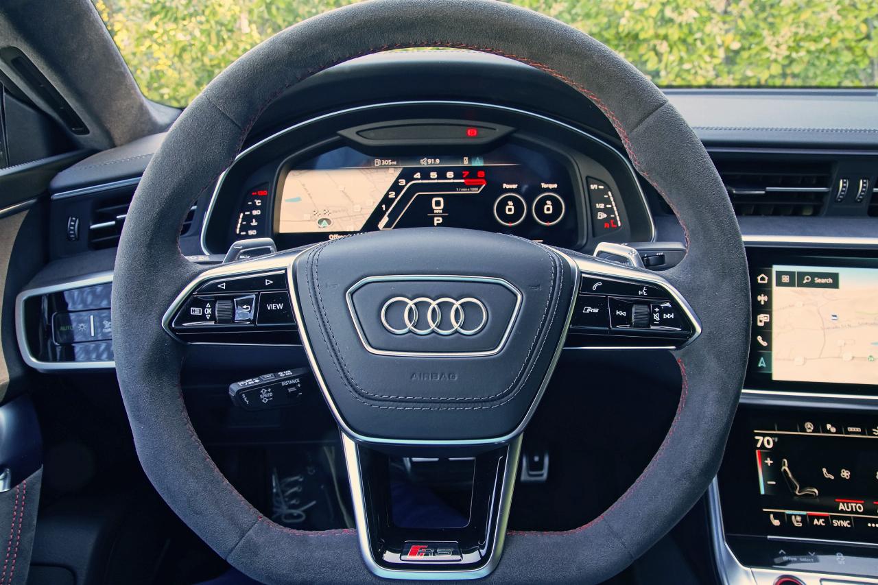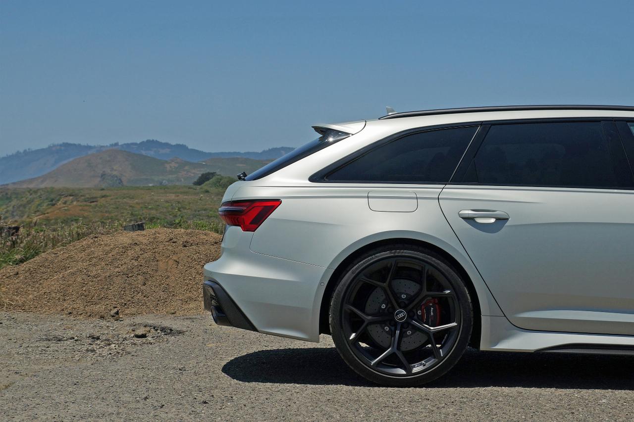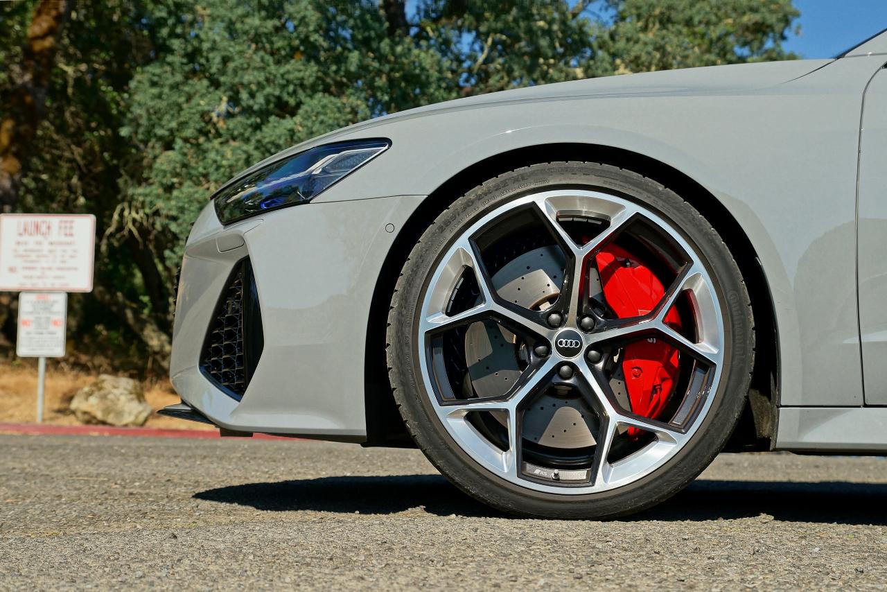 Das Heck des RS6 Avant ist etwas schwerer als jenes des RS7, was sich im Fahrverhalten praktisch nicht auswirkt. Die Stahlbremse ist von der Bremswirkung äquivalent zur Karbonbremse und kommt auf der Straße nicht ansatzweise an ihre Grenzen. Die geringere ungefederte Masse der Karbonbremse in Verbindung mit den neuen Rädern beruhigt das Handling allerdings merklich.