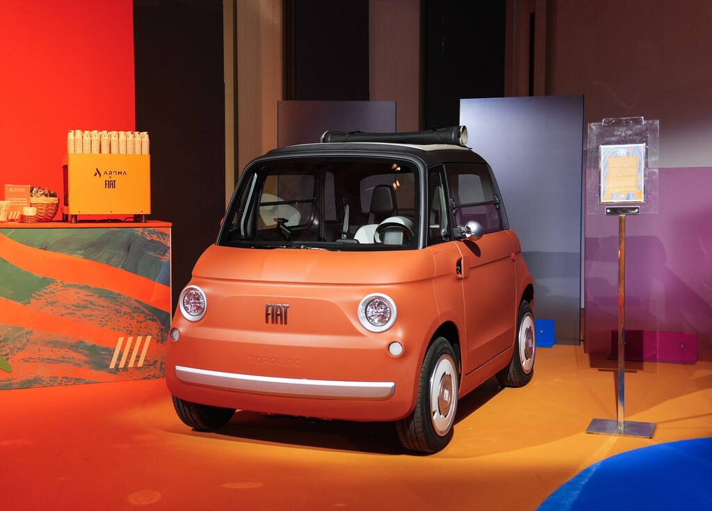 Olivier François, CEO Fiat und Global CMO der Stellantis Gruppe, François Leboine, Head of Design Fiat und Giorgetto Giugiaro, Vorsitzender des Designstudios GFG Style Olivier François hatten die Ausstellung im Hotel Magna Pars, im Herzen des Mailänder Mode- und Designviertels, eröffnet. Ciao Futura wird eingerahmt von zwei legendären Oldtimer: einem Fiat 500 aus dem Jahr 1957 und einem Fiat Panda aus den 1980er Jahren. In die Gegenwart führt der aktuelle Fiat Topolino Corallo, in die Zukunft der noch nicht erhältlichen Fiat Topolino Sport Edition. (aum)