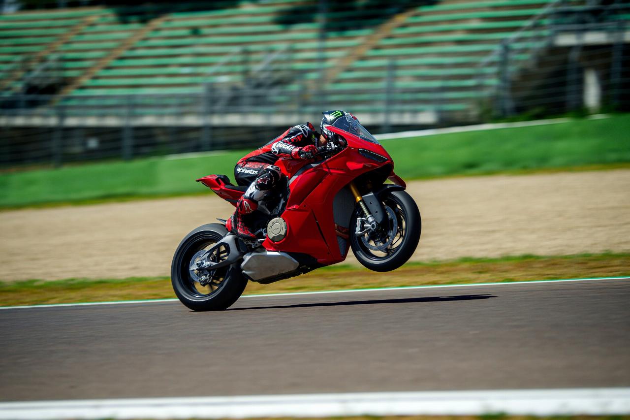 Der Motor erhält einen einen überarbeiteten Zylinderkopf mit neuen Nockenprofilen und einem höheren Hubwert. Er liefert 216 PS (159 kW) bei 13.500 Umdrehungen in der Minute und ein maximales Drehmoment von 121 Newtonmetern bei 11.250 U/min. Mit dem Racing-Auspuff leistet die Panigale noch einmal zwölf PS mehr. Die Lichtmaschine und die Ölpumpe wurden von der R übernommen, während die Getriebetrommel aus der Superleggera V4 stammt. Der Quickshifter wurde ebenfalls optimiert. Das 6,9-Zoll-Display ist völlig neu, breiter und bietet auch einen „Track“-Anzeigemodus mit Datenerfassung auf der Rennstrecke und Farbgebung aus dem Moto GP.