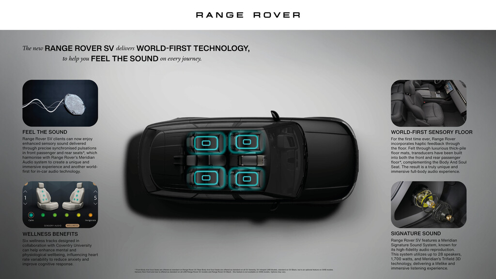 Die neue Innenraumfarbe Ebony Near‑Aniline zeichnet sich durch eine exklusive Stickperforation der Sitze und schwarze Birkenfurniere aus, die für ein weiches, satiniertes Finish sorgen. Zudem führt Range Rover in seiner gesamten Modellpalette nachhaltigere Reifen von Pirelli ein. Sie bestehen zu über 70 Prozent aus biobasierten und recycelten Materialien, darunter Silica aus Reishülsen, recyceltem Stahl sowie Ölen und Harzen auf Pflanzenbasis. Der Naturkautschuk ist zertifiziert.