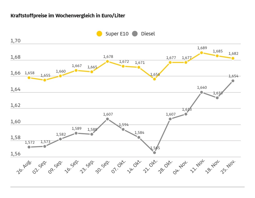 Entscheidend für die Entwicklung der Kraftstoffpreise ist in erster Linie der Rohölpreis. Und der ist in den vergangenen Tagen um drei 62 US-Dollar pro Barrel gesunken. Das schlägt sich jedoch nicht in spürbar niedrigeren Spritpreisen nieder. Zum Vergleich: Am 1. August 2025 war Super E10 auf einem vergleichbaren Preisniveau, Rohöl kostete damals aber auch rund 70 US-Dollar, war somit um rund acht US-Dollar teurer. Laut ADAC ist dies ein Beleg dafür, dass Tanken zurzeit deutlich überteuert ist. (aum)