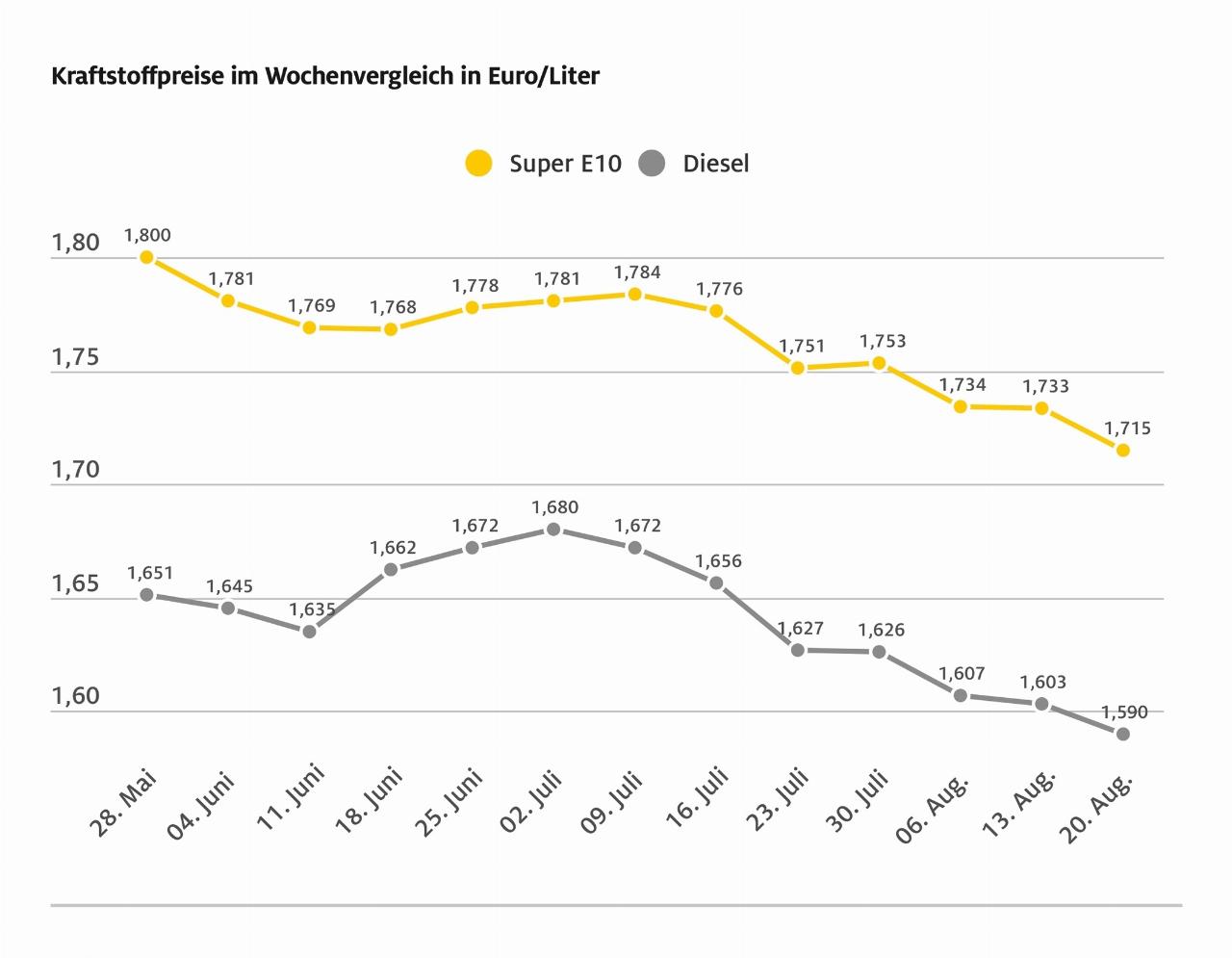 Auch Diesel ist abermals preiswerter als in der Vorwoche: Ein Liter kostet aktuell im bundesweiten Mittel 1,590 Euro. Das sind 1,3 Cent weniger als in der Vorwoche und ist gleichzeitig der niedrigste Stand seit Mitte Juni 2023. Gleichwohl hält der ADAC den Preis für Diesel nach wie vor für zu hoch. (aum)