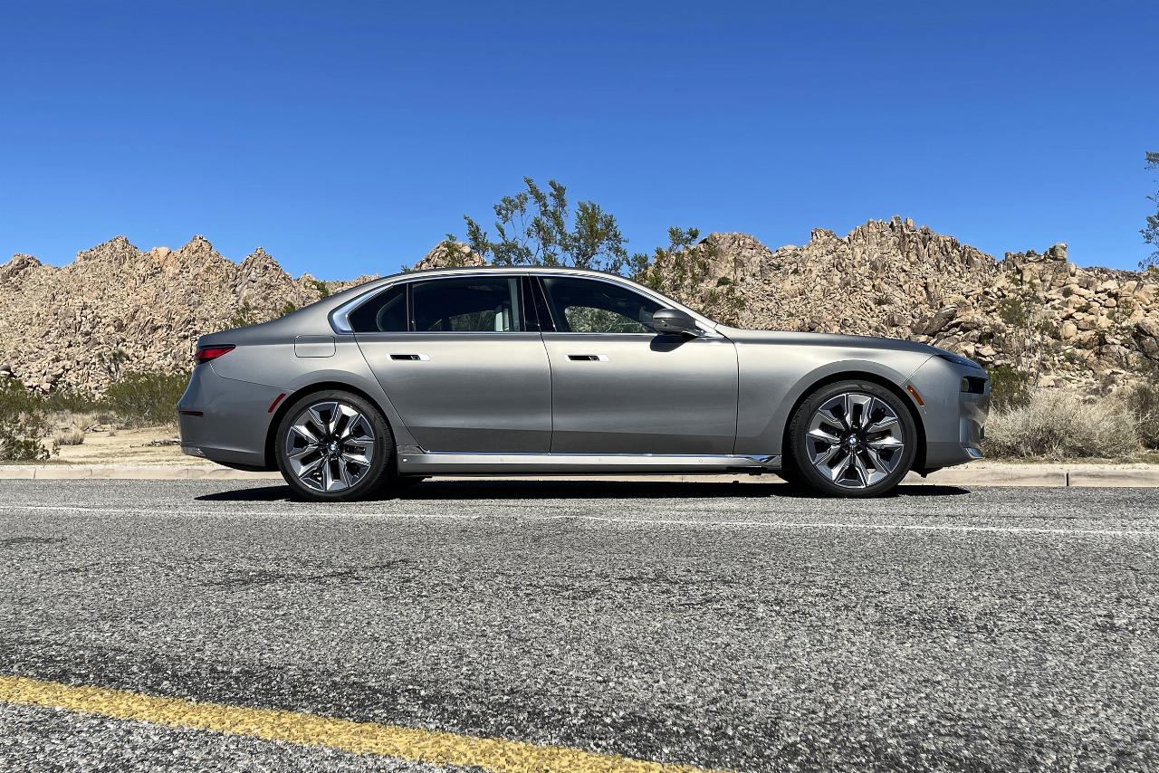 Dank der Batterie im Boden liegt der Schwerpunkt tief (je weniger Passagiere auf der Batterie sitzen, desto tiefer) und in Kombination mit serienmäßiger Luftfederung, mitlenkender Hinterachse und Wankstabilisierung liefert der i7 sowohl luxuriösen Komfort als auch überraschende Sportlichkeit. Die Spreizung der Fahrmodi ist groß, der i7 lenkt präzise dahin, wo man ihn positionieren möchte. Die Beschleunigung ist gut, aber nicht brutal, genau richtig für einen Luxuswagen.