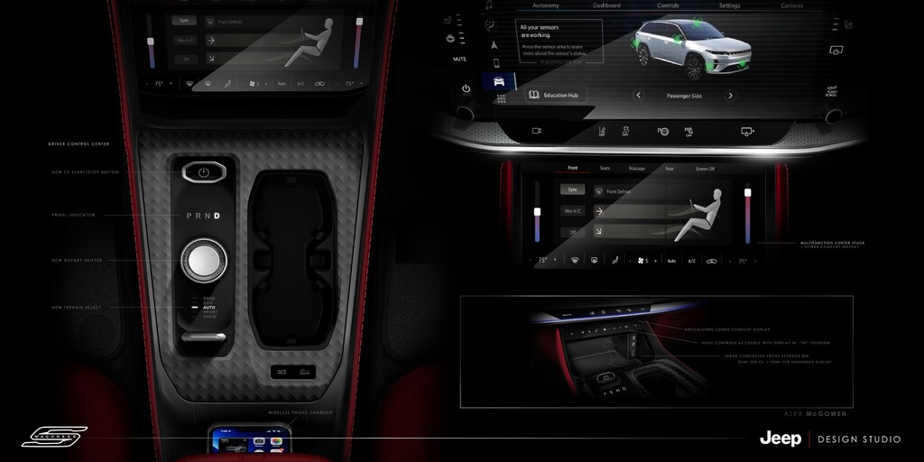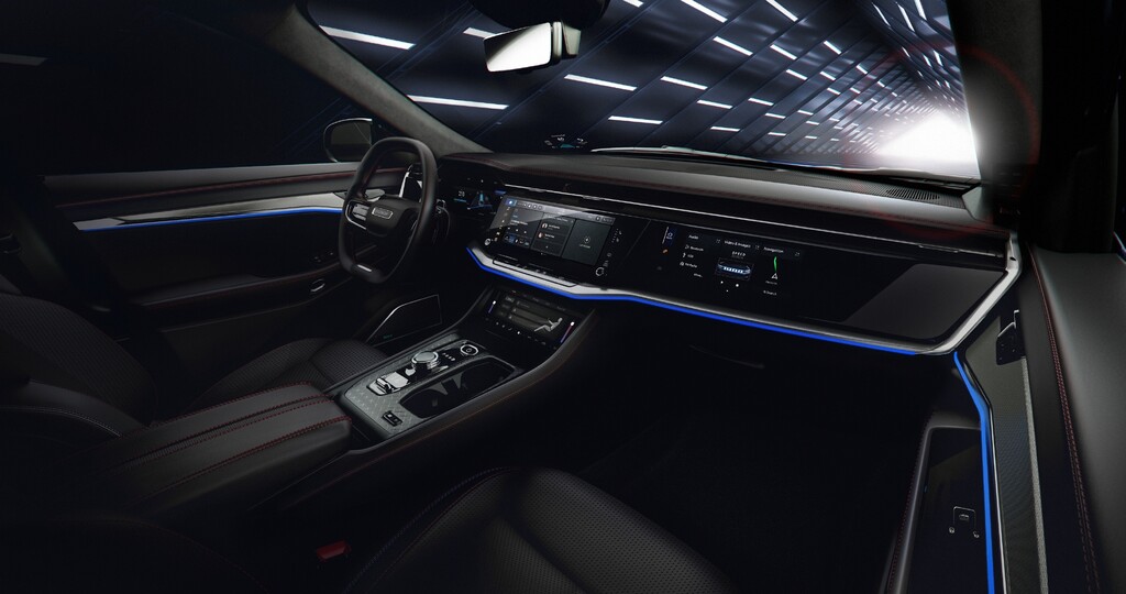 Der Jeep Wagoneer S verfügt über ein in Summe mehr als 45 Zoll großes, hochauflösendes Display und optional über einen 10,25 großen Bildschirm für den Beifahrer. Ebenfalls auf Wunsch wird ein Audiosystem mit 19 Lautsprechern, 1160-Watt-Verstärker und einem 12-Zoll-Subwoofer für tiefen Bass geliefert.