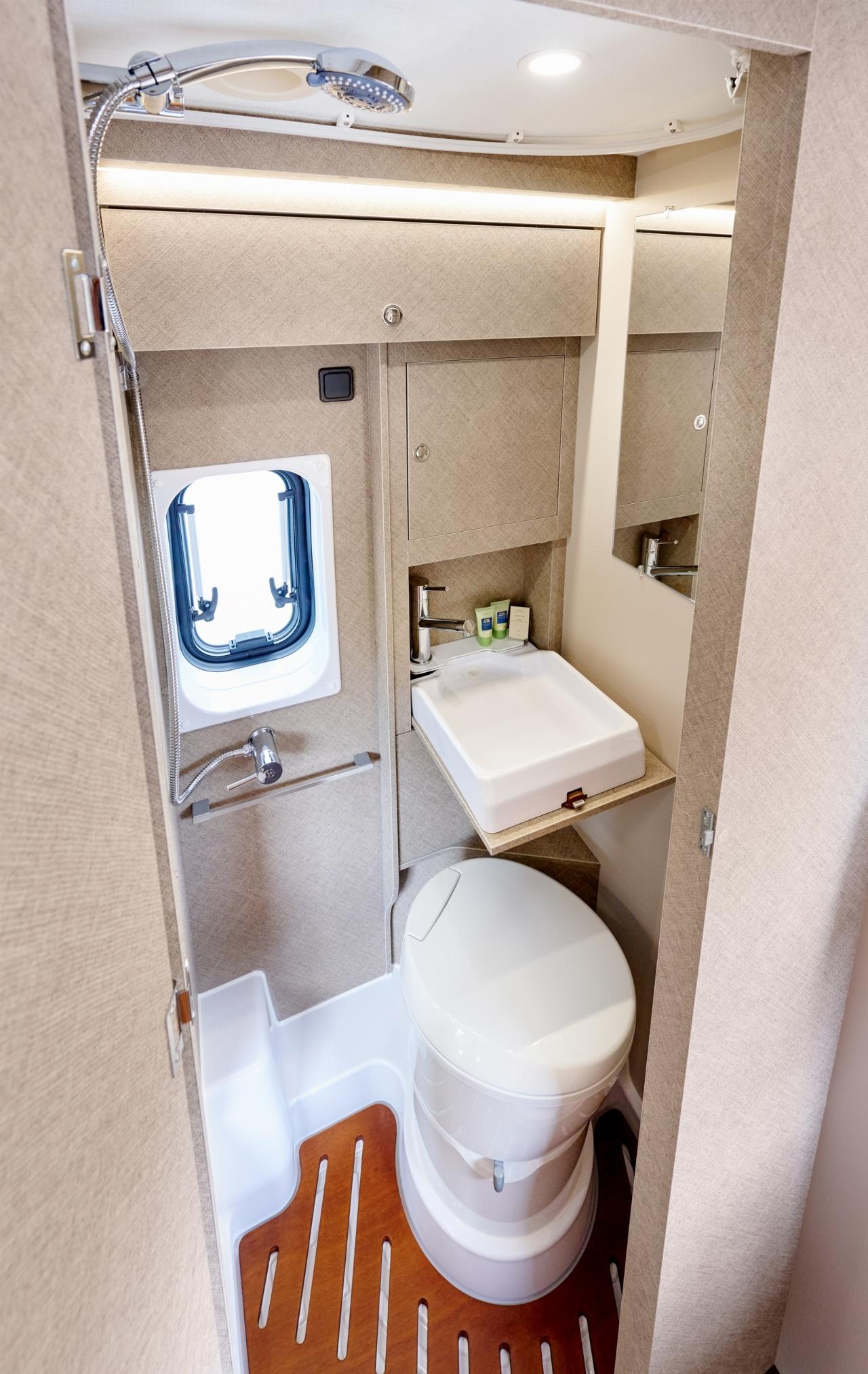 Charakteristisches Merkmal sind die beiden Einzelbetten im Heck, das auf der Beifahrerseite eine Liegefläche von 2,03 Meter aufweist, auf der Fahrerseite kommen Ruhesuchende auf 1,75 Meter unter. Beide Betten lassen sich hochklappen um einen großen Stauraum im Heck zu schaffen. Im Waschraum wird der Platz dank eines klappbare Waschbeckens optimal genutzt und reicht sowohl für die Toilettennutzung als auch zum Duschen. Die klassische Halb-Dinette im vorderen Wohnbereich ermöglicht in Verbindung mit den drehbaren Fahrerhaussitzen ein Vier-Personen-Dinner. Optional kann der Davis 600 auch mit einem Aufstelldach mit Doppelbett ausgerüstet werden, dann steigt das Schlafplatzangebot auf vier.