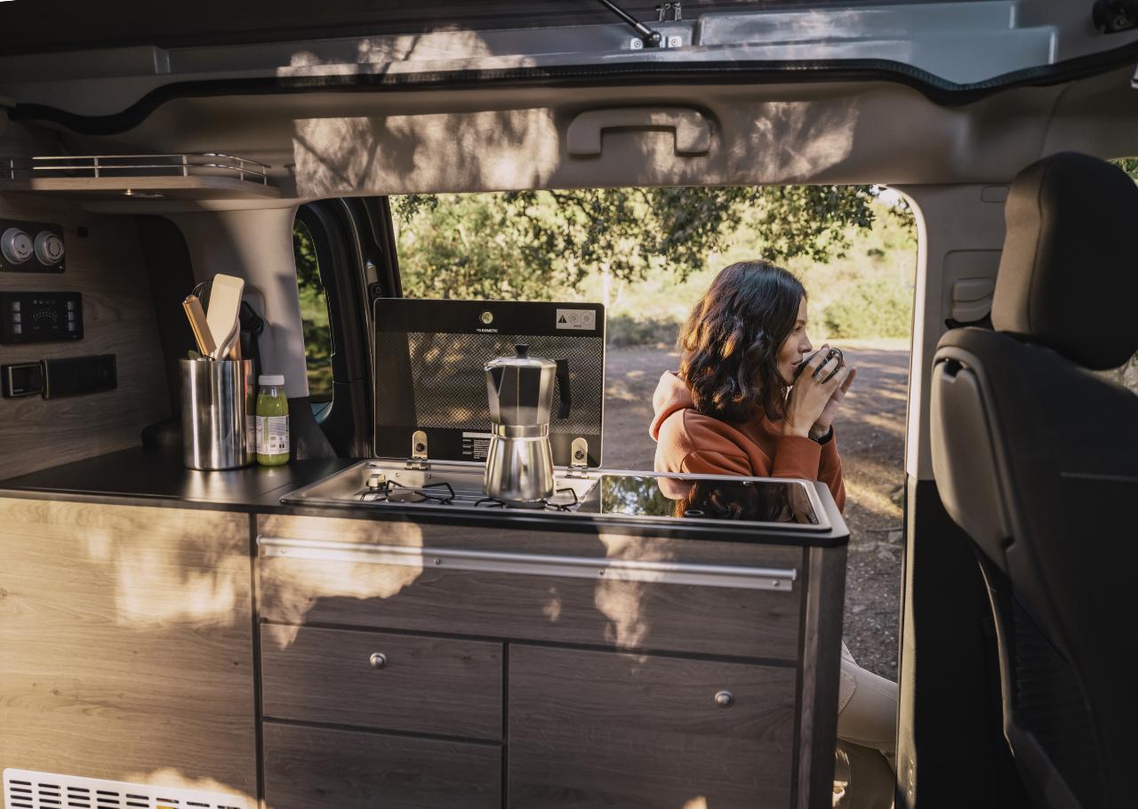 Der Citroën Holidays ist ab Frühjahr bestellbar und bietet Schlafplätze für vier Personen, wobei das aufklappbare Dachzelt in Wagenfarbe erhältlich ist. Die herausnehmbare Sitzbank kann in ein 1,15 Meter breites und 1,90 Meter langes Bett umgebaut werden, oben misst die Liegefläche 1,95 Meter mal 1,20 Meter. Mit an Bord sind eine programmierbare Heizung, eine Spüle und eine Kochmöglichkeit mit zwei Gasbrennern, ein 16-Liter-Kühlschrank und ein versenkbarer Tisch sowie nach hinten schwenkbare Vordersitze. Die Küchenzeile kann mit nach draußen genommen werden. Frisch- und Abwassertank des Holidays fassen jeweils zehn Liter. Der 4,98 Meter lange Campingvan bietet auch eine Dusche am Heck, die mit einem 25-Liter-Tank gekoppelt ist.
