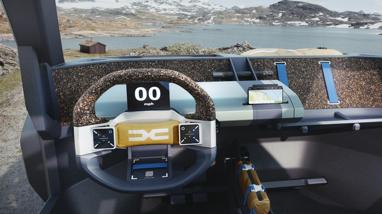 Einen Ausblick auf die Zukunft zeigt die jetzt in Paris vorgestellte Studie Manifesto, eine Mischung aus Buggy und Geländewagen, die in dieser Form nie von den Bändern rollen wird. Bei der Konzentration auf das Wesentliche verzichteten die Kreativen unter anderem auf einen zweiten Scheinwerfer, und entwickelten eine Leuchteinheit, die sich abnehmen und als Taschenlampe einsetzen lässt. Der Manifesto ist natürlich voll vernetzt, allerdings nur, wenn das eigene Smartphone mit dem Bordrechner verbunden wird. „Wer braucht drei Bildschirme, wenn es Smartphone mit GPS-Funktion ausreicht?“, fragt De Vot. Der Allradler rollt auf pannensicheren Airless-Reifen, und im Innenraum werden natürliche Materialien wie Kork eingesetzt. „Der Manifesto“, so Design-Direktor David Durand, „vereint eine breite Palette von Innovationen. Einige sind extrem, doch wir werden manche davon in künftigen Dacia-Modellen übernehmen.“