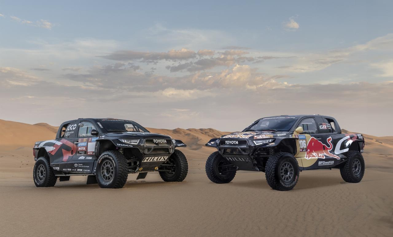 Der Dakar-Hilux in der neuen Toyota-Motorsportfarbe Schwarz ist zehn Zentimeter breiter als sein Vorgänger und verfügt über eine überarbeitete Aufhängung. Ein neues Kühlsystem ermöglicht größere Redundanzen, außerdem wurde die Position der Klimaanlage optimiert. Im Rahmen der Saison 2023 wurde das Fahrzeug auf fast 30.000 Kilometern ausgiebig getestet und ständig weiterentwickelt. Zusätzliche Tests wurden in der Kalahari-Wüste durchgeführt, die finale Dakar-Vorbereitung erfolgte in der Namib-Wüste.