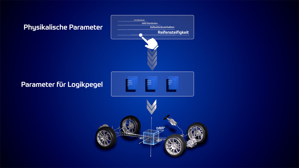 Bei dem Zusammenspiel müssen alle einwirkenden Kräfte und Variablen mitgedacht, getestet und verifiziert werden. Das ist bislang sehr komplex. Mit dem Cubix-Tuner nutzt ZF die Besonderheiten des software-definierten Fahrzeugs, um diesen Prozess zu vereinfachen und zu beschleunigen. Das spart Kosten, Mühen und verkürzt den Entwicklungszyklus massiv – insbesondere bei Plattformen, die mit mehreren Antriebsformen (Front-, Heck- oder Allradantrieb) ausgeliefert werden.