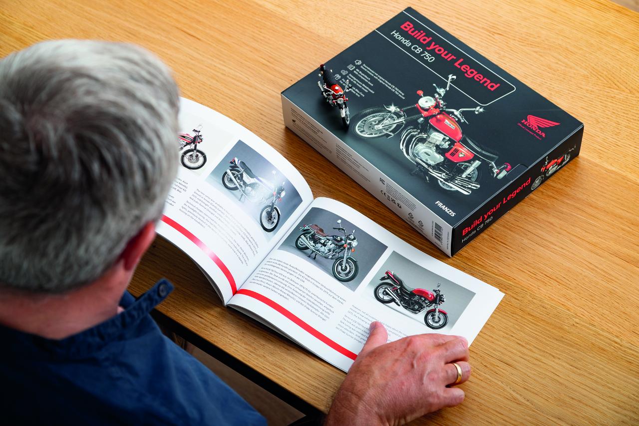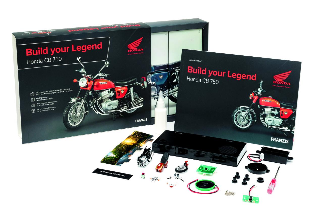 Der Motorradzubehör-Multi feiert daher den anstehenden 55. Geburtstag der Zweiradlegende mit einem exklusiven Modellbausatz. Für 89,95 Euro gibt es die berühmte Honda im Maßstab 1:24 samt Soundgenerator und Lautpsrecher im Sockel. Entzwickelt wurde der Modellbausatz von den Experten von Franzis. Dazu gibt es noch ein 67-seitiges Begleitbuch mit vielen Fotos und Hintergrundinfos zu Entwicklung, Technik und Modellgeschichte.