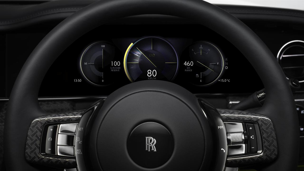 Der obere Teil des Armaturenbretts erhielt eine über die gesamte Fahrzeugbreite verlaufende Glasverkleidung im oberen Teil der Armaturentafel. Das Kombiinstrument und das neue, dauerhaft sichtbare zentrale Informationsdisplay wurden für das aus dem Spectre bekannte digitale Betriebssystem Spirit neu gestaltet. Kunden können jetzt bis zu zwei Streaming-Geräte an die hinteren Bildschirme anschließen. Auf der Beifahrerseite befindet sich der neue „Spirit of Ecstasy“-Einbauvitrine, die sowohl eine analoge Uhr als auch eine beleuchtete „Emily“-Figur aus massivem Metall zeigt. Direkt vor dem Beifahrer befindet sich außerdem ein Element mit einem beleuchteten „Cullinan“-Schriftzug und einer Cityscape-Grafik. Inspiriert von den Wolkenkratzern der Megastädte bei Nacht, besteht sie aus 7000 Elementen. Kunden können in Zusammenarbeit mit den Bespoke-Designern auch ihr eigenes beleuchtetes Motiv erstellen.