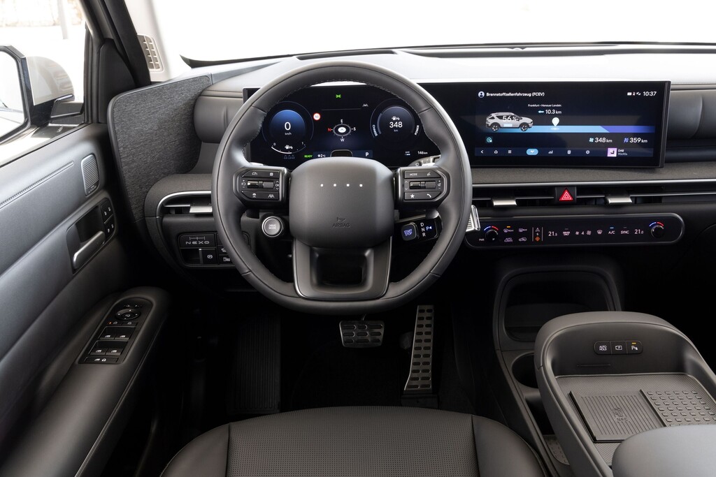 Das 4,75 Meter lange SUV im kantig-klobigen „Art of Steel“-Design – so nennt der Hersteller die neue Formensprache – ist ein ebenso wuchtiges wie geräumiges Auto. Der Elektroantrieb leistet 150 kW (204 PS), stellt ein Drehmoment von bis zu 350 Newtonmetern bereit und ermöglicht eine Reichweite von bis zu 826 Kilometern. Trotz eines geradezu mickrigen Lithium-Ionen-Polymer-Akkus mit lediglich 1,56 kWh Speicherkapazität. Wie das funktioniert? Die Brennstoffzellentechnik macht den Unterschied.