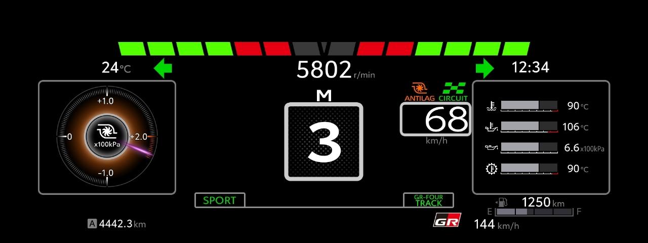 Die Cockpit-Mittelkonsole wurde um 15 Grad Richtung Fahrer gedreht, der nun auch etwas tiefer sitzt. Zwecks verbesserter Sicht wurde die Oberkante der Instrumententafel um fünf Zentimeter abgesenkt und die Position des Rückspiegels geändert. Das neue volldigitale 12,3-Zoll-Kombiinstrument bietet die beiden Layout-Modi Normal und Sport, letzteres mit rennspezifischen Elementen.