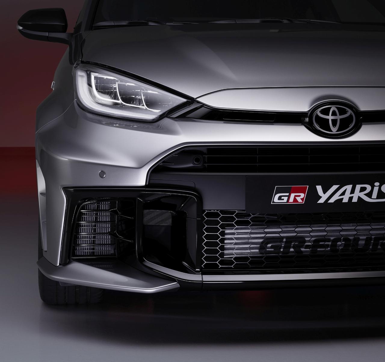 Auch äußerlich hat sich einiges am Toyota GR Yaris getan. Der untere Kühlergrill an der Fahrzeugfront verfügt über ein neues Stahlgitter, der seitliche Kühlergrill hat eine größere Öffnung, und der untere Stoßfänger besitzt eine neue, geteilte Konstruktion, die Reparaturen und Austausch einfacher und kostengünstiger macht. Am Heck kann die Luft, die unter dem Fahrzeugboden strömt, durch eine neue Öffnung am unteren Rand der unteren Verkleidung entweichen. Dies verringert den Luftwiderstand, verbessert die Wendigkeit und Stabilität des Fahrzeugs und leitet die Wärme der Abgasanlage ab. Die Nebel- und Rückfahrscheinwerfer wurden neu positioniert, um die Gefahr von Beschädigungen zu verringern. Die obere Bremsleuchte wurde vom Heckspoiler nach unten an die Heckklappe verlegt, so dass sich alle Rückleuchten in einer klaren Sichtlinie für nachfolgende Fahrer befinden. Die Verlegung des Bremslichtes erleichtert auch den Austausch oder die Anpassung des Spoilers.