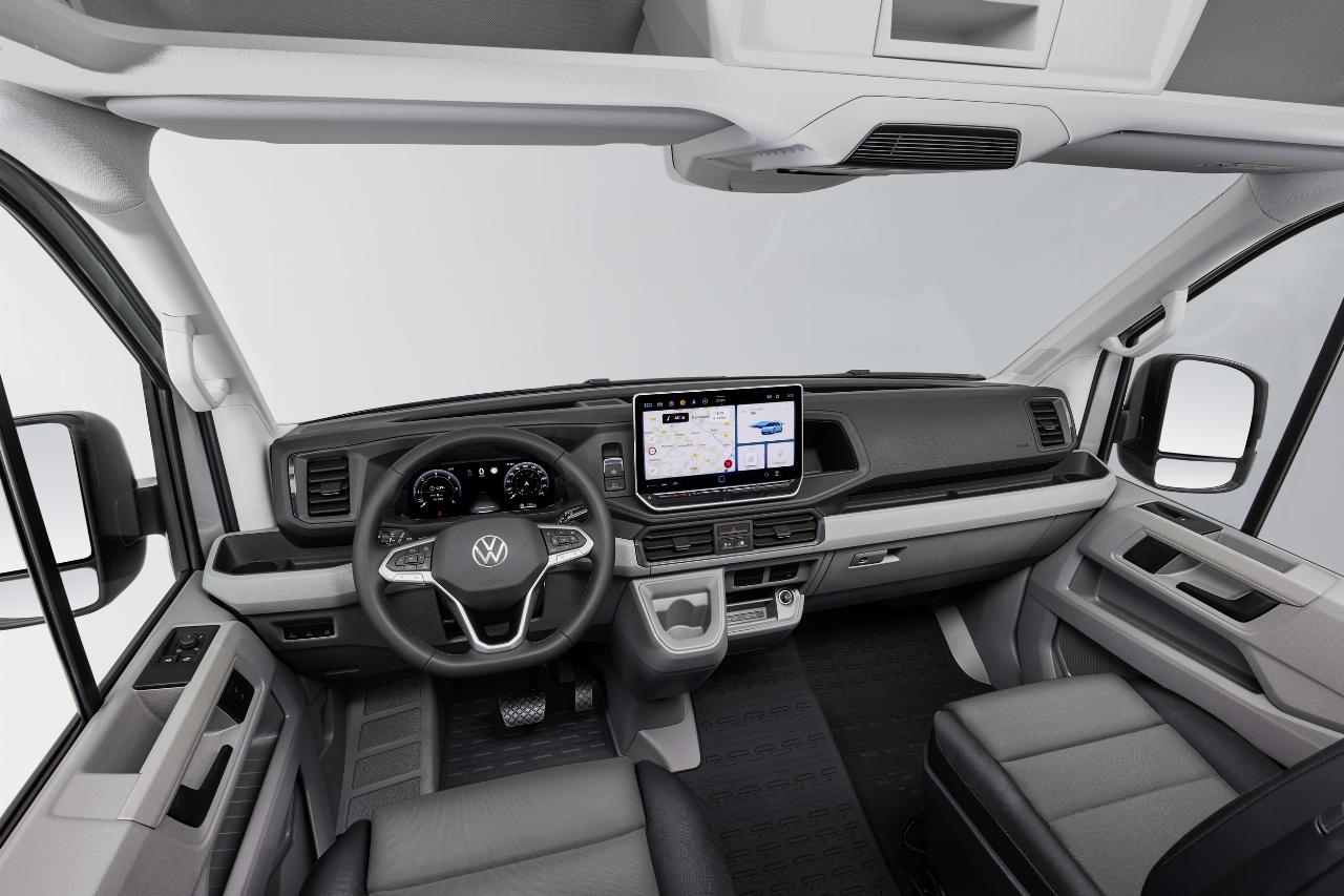 Volkswagen Nutzfahrzeuge spendiert dem Crafter ein umfangreiches Update bei Soft- und Hardware. So wird das Cockpit vollständig überarbeitet und bekommt eine digitale Instrumentenanzeige, ein Multifunktionslenkrad, eine elektronische Parkbremse und diverse Assistenzsysteme. Das Infotainment wird auf den neuesten Stand gebracht und bekommt Chat-GPT als Sprachassistenten. Der Vorverkauf des neuen VW Crafter beginnt Mitte April. (aum)
