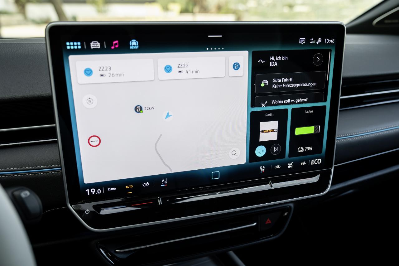 Im ID7 kommen erstmals elektronisch gesteuerte Luftausströmer zum Einsatz, die die Luft großflächig im Innenraum verteilen. Ein großes, optionales Panoramadach kann per Touch- und Sprachbedienung elektronisch blickdicht oder klar geschaltet werden. Die neue Sprachassistenz IDA soll natürliche Sprache verstehen. Darüber hinaus sollen in die neue Menüstruktur und Bedienlogik des Infotainmentsystems viele Wünsche der Kunden eingeflossen sein. (aum)
