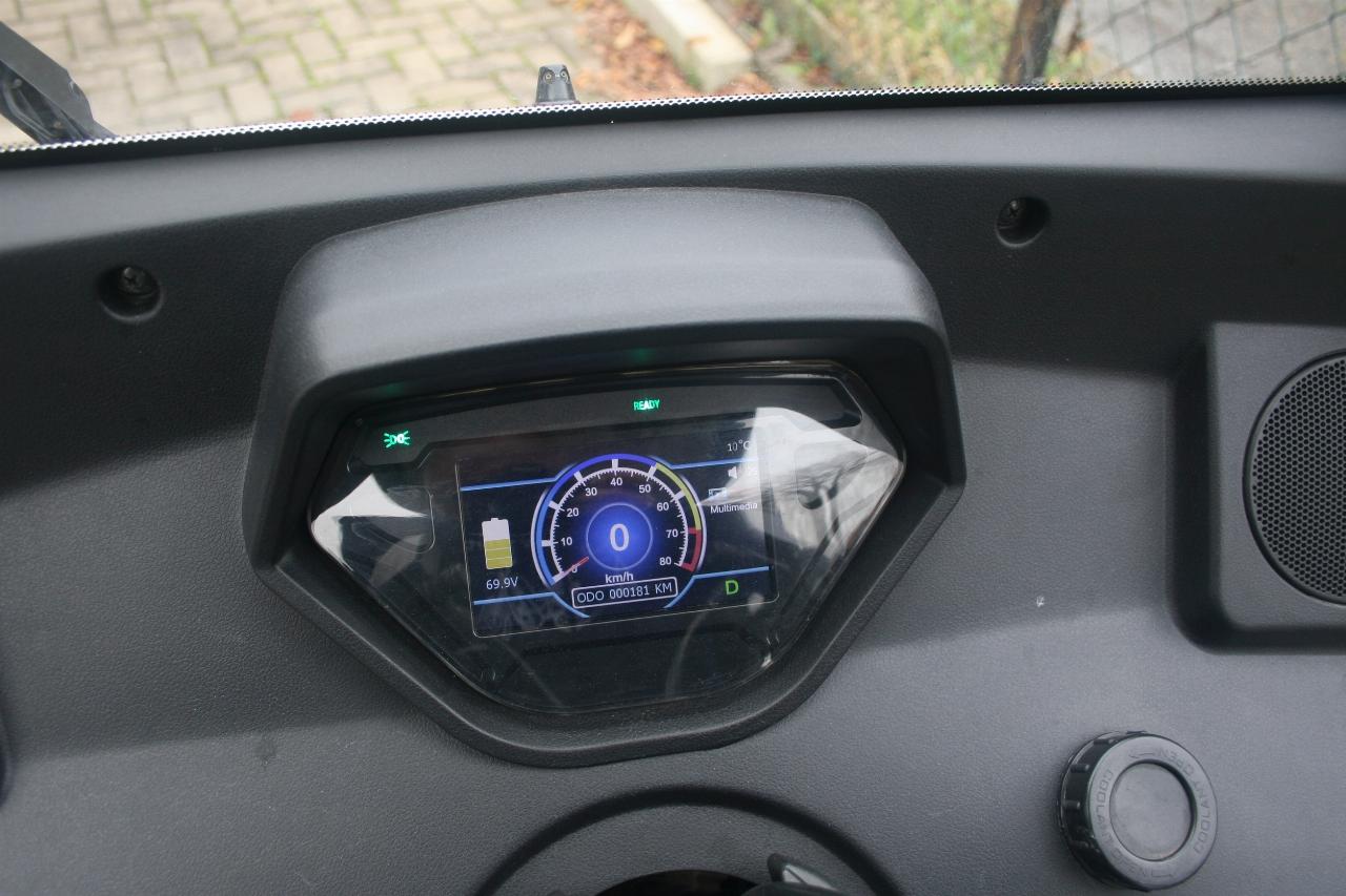 Der kleine E-Transporter mit über einer halben Tone Nutzlast hat eine Dauerleistung von 7,5 kW (10 PS). Der Motor schiebt den Ari bis etwa 30 km/h mit Vehemenz vorwärts und bis Tempo 50 geht es auch flott weiter. Die Höchstgeschwindigkeit wird mit 78 km/h angegeben. Der Tacho reicht bis 80 und die Nadel geht gerne bis zum Anschlag.