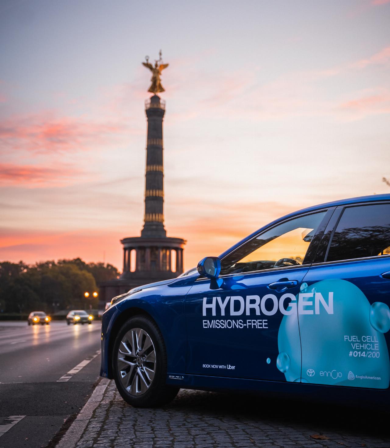 Die Autos sind über die Uber-App buchbar. Der Mirai kommt mit seiner Brennstoffzellen-Technik pro Tankfüllung bis zu 650 Kilometer weit, eignet sich damit auch für lange Strecken und Dauereinsatz. Betankt werden die Fahrzeuge schnell und einfach an den Wasserstoff-Tankstellen des Berliner Unternehmens H2.