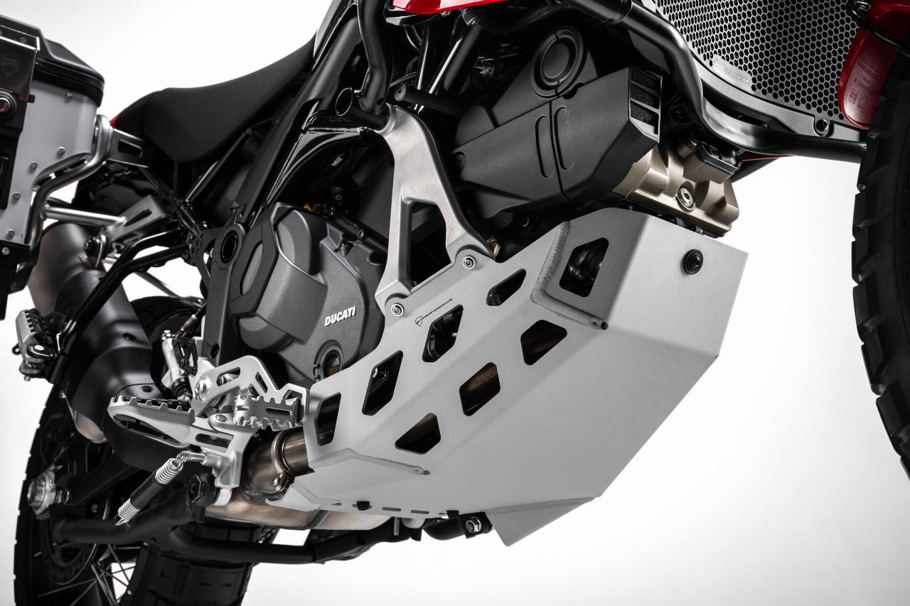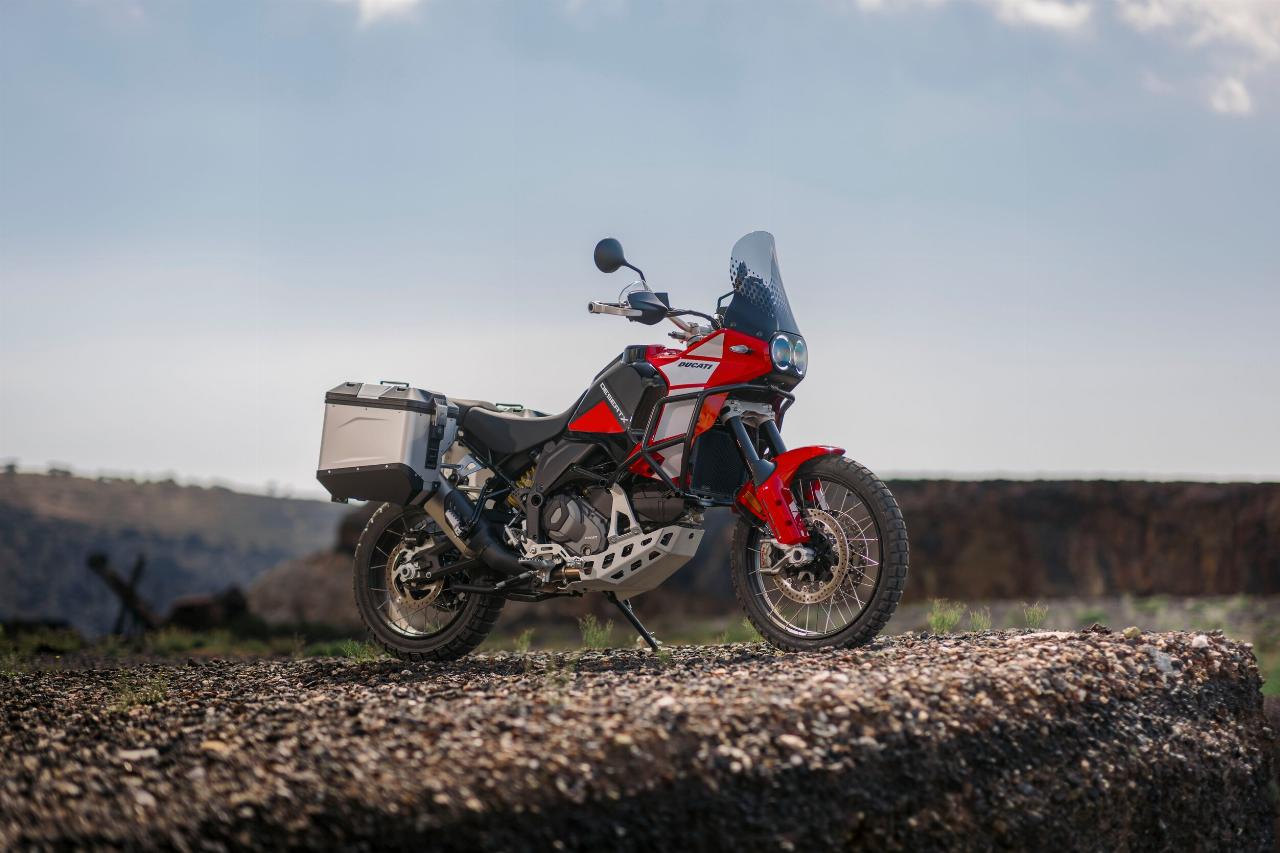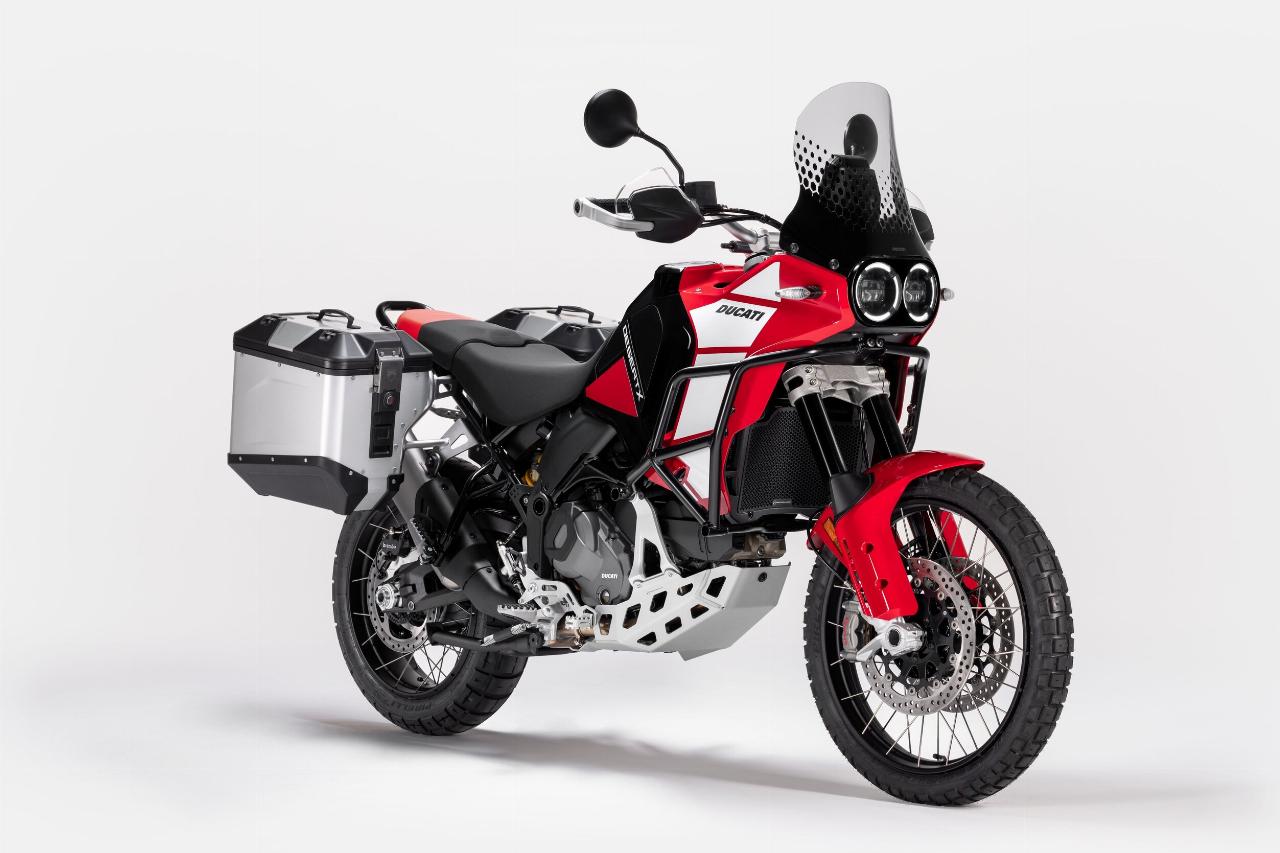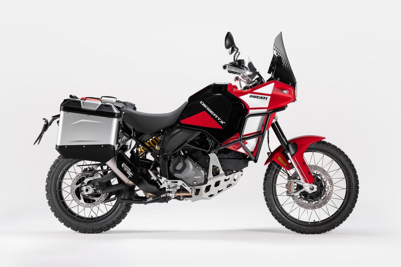Ducati erweitert das Desert-X-Programm um eine weitere Version. Die vollausgestattete Discovery soll vor allem Globetrotter ansprechen und fährt in einer neuen auffälligen Kontrastlackierung in Thrilling Black und Ducati Red vor. Serienmäßig verfügt sie über verstärkte Handschützer, einen Motorschutzbügel, der auch die Wasserpumpe schützt, ein Kühlergitter und einen verstärkten Ölwannenschutz. Auch der Hauptständer, beheizbare Griffe und eine größere Verkleidungsscheibe sowie das Alukofferset mit 76 Litern Fassunsgvermögen sind Serie. Das Turn-by-Turn-Navigationsgerät wird über die Ducati-App genutzt.