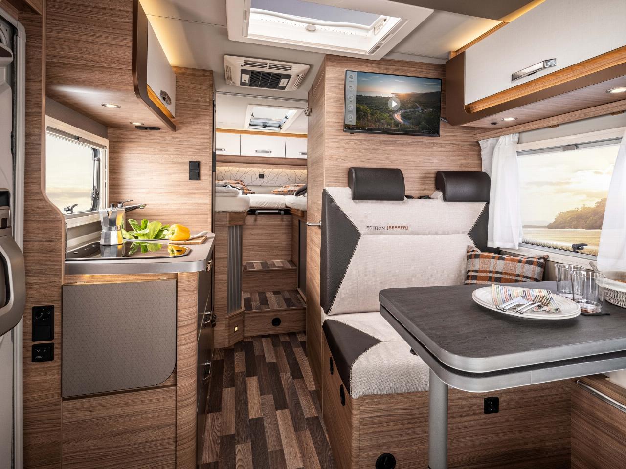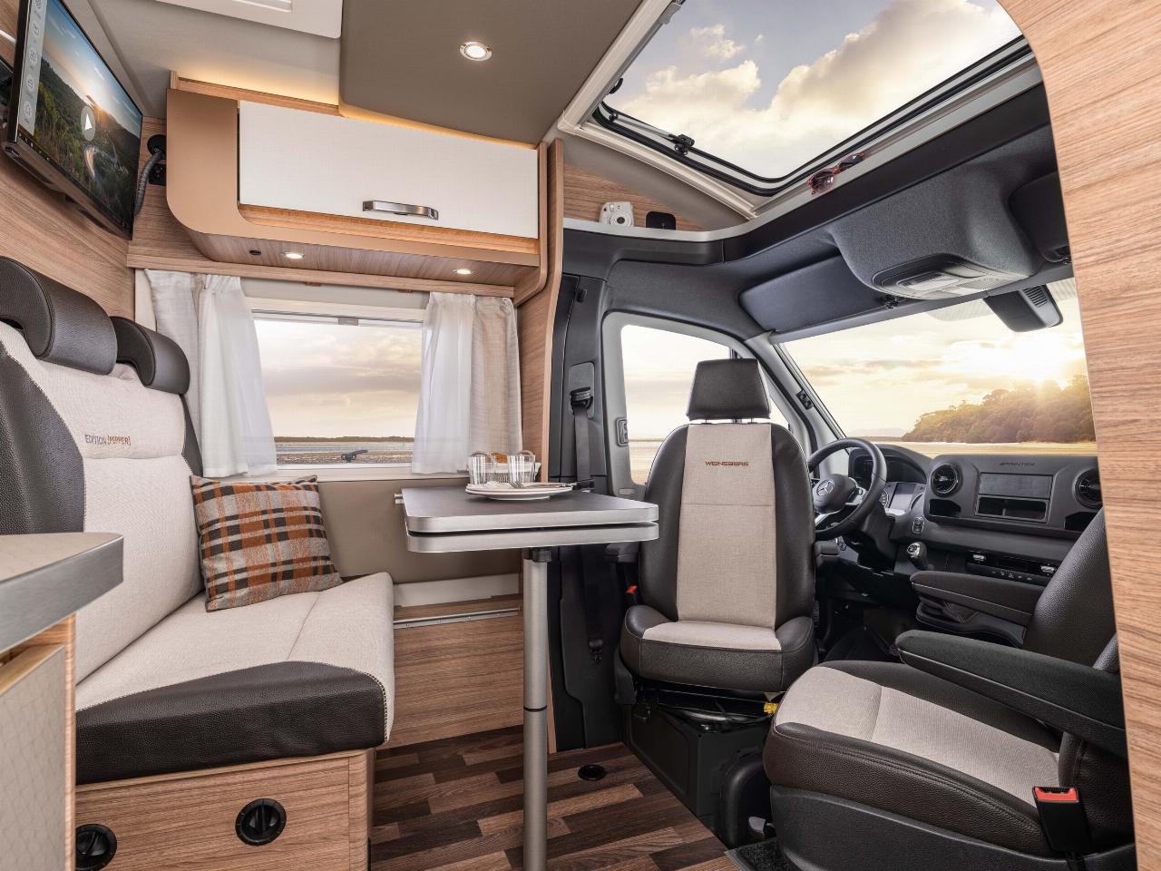 VW Nutzfahrzeuge ist ohnehin zum bevorzugten Partner von Knaus-Tabbert avanciert. Vor kurzem wurde eine strategische Zusammenarbeit bekanntgegeben. Der Van TI, ebenfalls ein Teilintegrierter für rund 80.000 Euro, rollt künftig auf dem Fahrgestell des Crafter, der zumindest teilweise den baugleichen MAN TGE im Knaus-Programm ablöst. Zweifarblackierung, Luftfederung und die allfälligen Assistenz-Sicherheitssysteme sind bei ihm zu haben. Gerüchteweise will die Marke den Crafter auch als ausgebauten Kastenwagen entwickeln, der sich dann in die Boxlife-Familie einreiht, die bislang ausschließlich auf Fiat basiert.