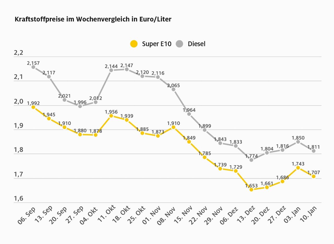 Begünstigt wurde der Rückgang der Spritpreise vor allem durch die niedrigeren Rohölnotierungen. Während ein Barrel der Ölsorte Brent vor einer Woche noch rund 83 US-Dollar kostete, liegt der Preis aktuell bei etwa 80 Dollar. Vorteilhaft für die Verbraucher ist zudem, dass der Euro gegenüber dem US-Dollar erneut stärker geworden ist. Trotz der für Kraftfahrer erfreulichen Entwicklung sieht der ADAC Potenzial für weitere Preisnachlässe. Zudem empfiehlt er, abends zu tanken. Vor allem zwischen 20 und 22 Uhr sind die Kraftstoffpreise niedrig und es lassen sich gegenüber den Morgenstunden bis zu zwölf Cent je Lieter sparen. (aum)