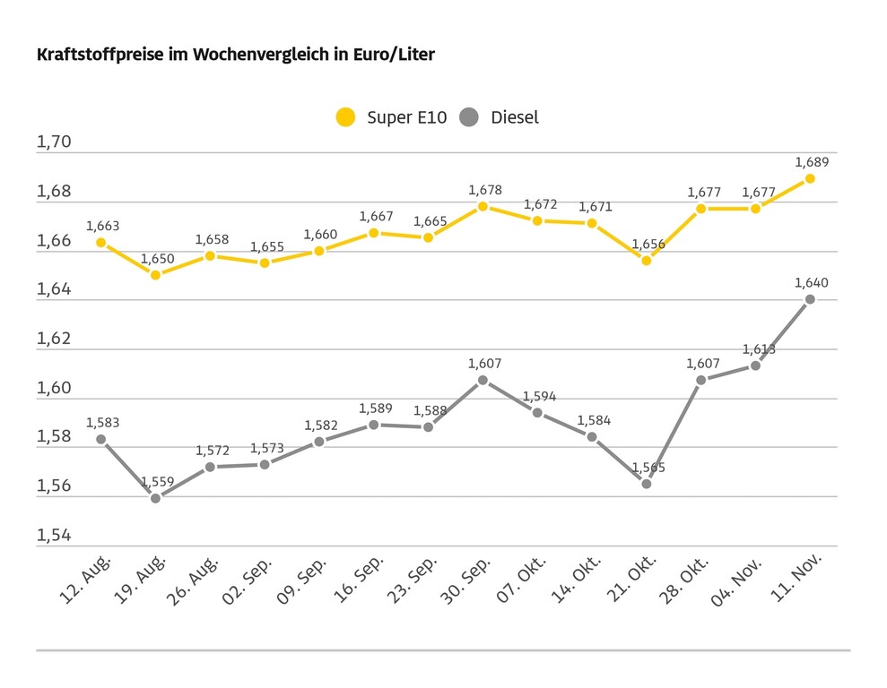 Die Rahmenbedingungen, die die Entwicklung der Kraftstoffpreise beeinflussen, geben laut ADAC jedoch keinen Hinweis, warum Tanken zuletzt deutlich teurer geworden ist. So ist der Rohölpreis der Sorte Brent seit der Vorwoche zwar um rund einen US-Dollar je Barrel auf nun 65 US-Dollar gestiegen. Dafür steht jedoch auch der Euro im Vergleich zum US-Dollar wieder höher, wodurch der Import von Rohöl etwas günstiger und der Effekt höherer Rohölnotierungen gemindert wird. Blickt man etwa auf die Situation Ende Juli, so war Super E10 damals rund zwei Cent billiger, obwohl bei einem ähnlichen Euro-Dollar-Wechselkurs Rohöl deutlich teurer war. Mit dem Start der Heizperiode und der gestiegenen Nachfrage klettert in der Regel aber auch der nahezu identische Diesel im Preis. (aum)