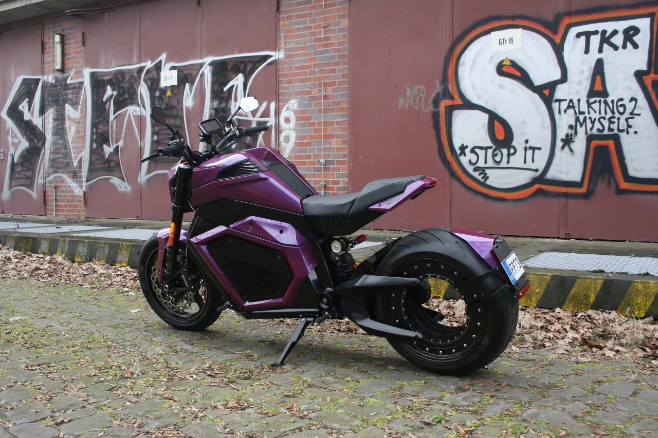 Jeweils eine Nummer kleiner haben es die Versionen TS Pro und TS mit 102 kW (139 PS), 1000 Nm und dreieinhalb Sekunden sowie 80 kW (109 PS), immer noch stolzen 700 Nm und viereinhalb Sekunden für den Standardspurt. Der Preis bewegt sich dann um die 33.000 Euro bis 36.600 Euro. Die Höchstgeschwindigkeit wird mit 180 km/h und 200 km/h bei der Ultra angegeben. Als Reichweiten nennt Verge je nach Modell zwischen 250 und 375 Kilometer. Die Angaben beziehen sich allerdings auf Stadtfahrten. 100 bis 150 Kilometer dürfte man da wohl auf Überlandfahrt abziehen, wie Presseansprechpartner Daniel Taipale zumindest für das mittlere Modell mit angegeben 350 Kilometern einräumt. Versprochen werden Schnellladezeiten von 25, 35 und 55 Minuten (Ultra, TS Pro und TS). Die Ultra kommt mit einer 21,8 kWh großen Batterie daher, die anderen beiden haben 20,2 Kilowattstunden.