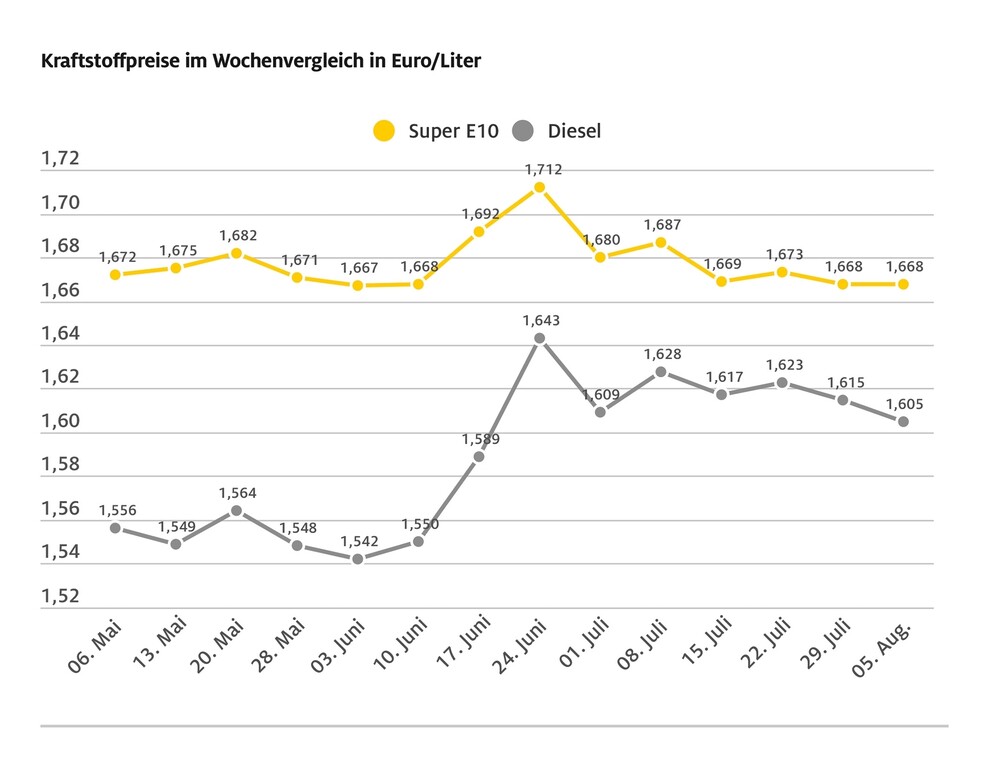 Schon seit einigen Wochen moniert der ADAC ein zu hohes Preisniveau bei Diesel. Daran ändert auch der gegenüber der Vorwoche leichte Rückgang um einen Cent auf durchschnittlich 1,605 Euro je Liter nichts. Unverändert liegt der Benzinpreis bei 1,668 Euro je Liter Super E10. Gleichwohl ist der Ölpreis in den vergangenen sieben Tagen deutlich gesunken. Das hätte aus Sicht des ADAC auch zu einem günstigeren Benzinpreis führen müssen. Der Abstand zwischen beiden Kraftstoffsorten spiegele aber so oder so nach wie vor nicht die unterschiedliche Besteuerung von rund 20 Cent wider, betont der Kraftfahrerclub. (aum)
