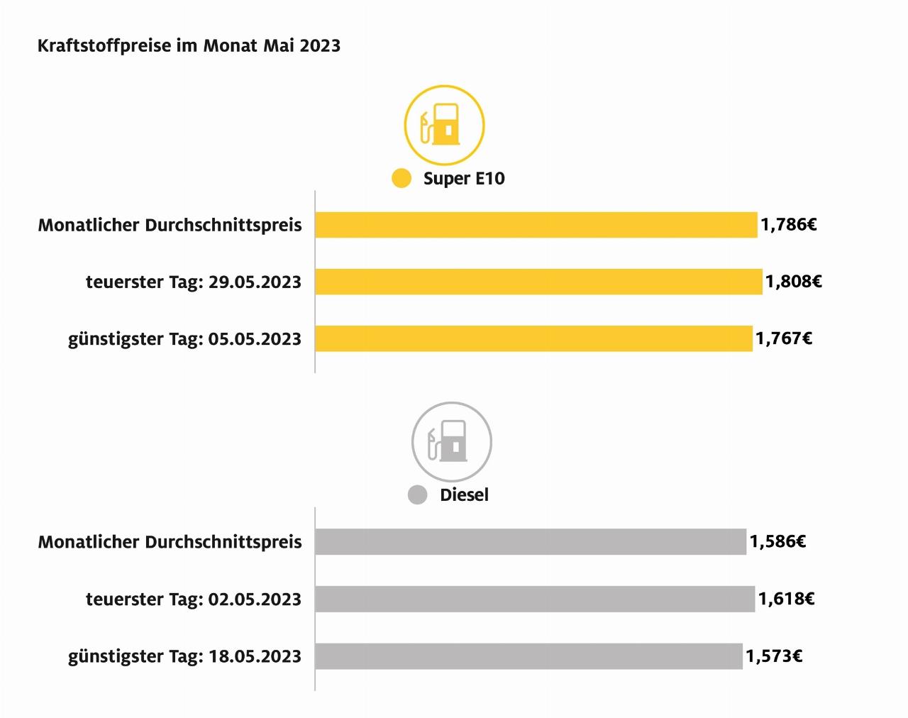 Markt & StatistikADACKraftstoffpreiseDieselBenzinMai 2023