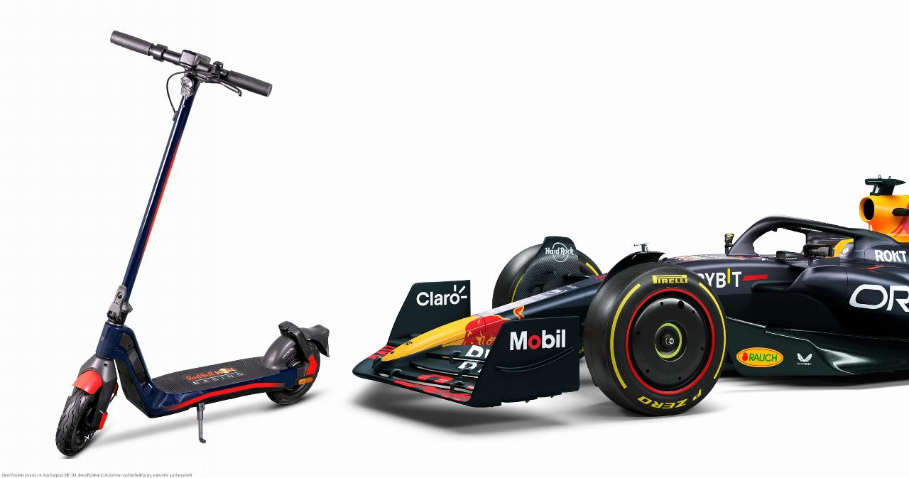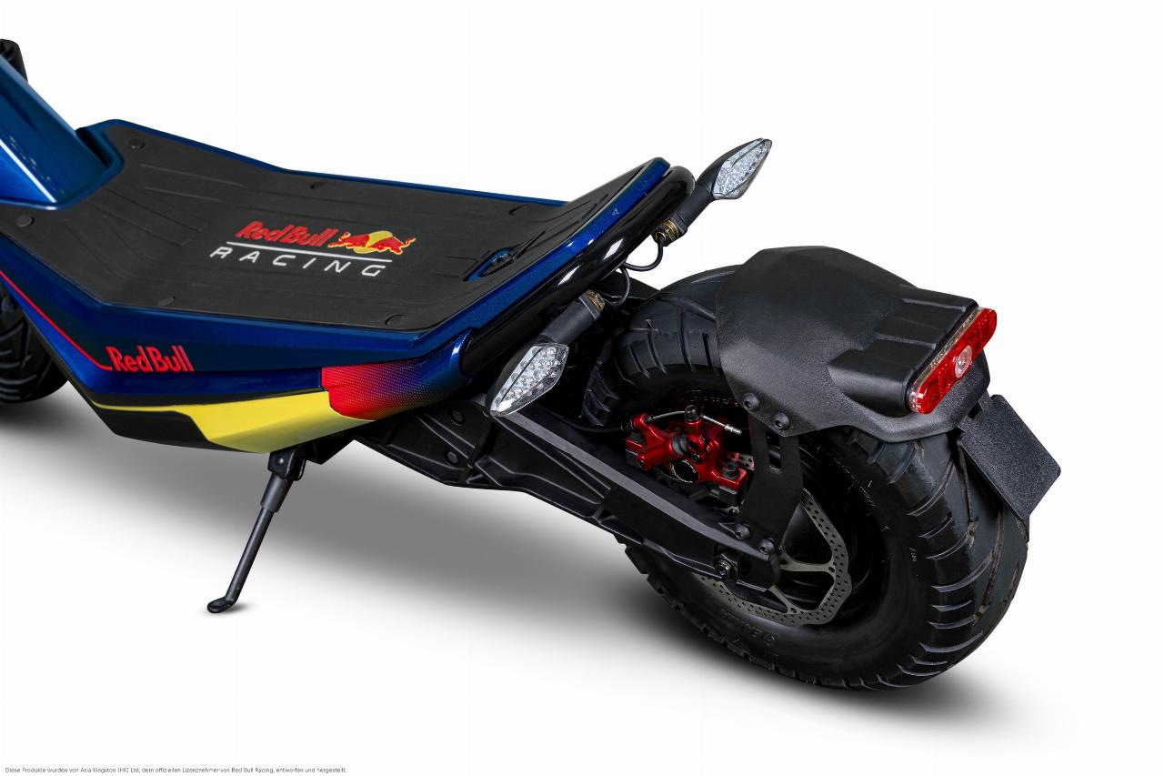 Topmodell ist der RS 1200 AT (All Terrain) mit 500 Watt Dauer- und 1000 Watt Spitzenleistung sowie Scheibenbremsen. Mit seinen dicken und 13 Zoll großen Luftreifen, Federgabel und hinteren Stoßdämpfern ist er geländetauglich. Zugeschaltet werden können drei Unterstützungsstufen für Steigungen von bis zu 33 Prozent. Die 960 Wh große Batterie des klappbaren E-Scooters steht für Reichweiten von bis zu 60 Kilometern. Der Red Bull Racing RS 1200 AT hat allerdings keine Straßenzulassung.