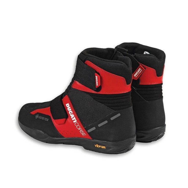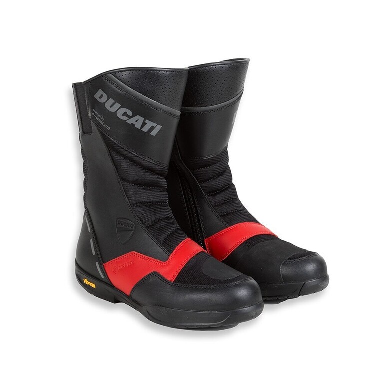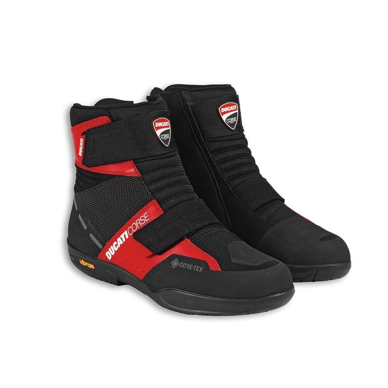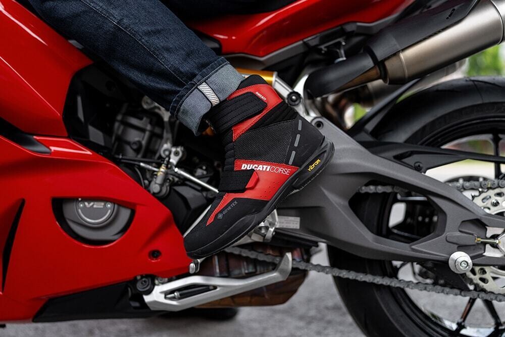 Ducati erweitert seine Bekleidungskollektion um die Stiefel Ducati Corse City C3 und Strada C4, die exklusiv von Held gefertigt werden. Beide Modelle verfügen über eine wasserdichte und atmungsaktive Goretex-Membran. Die Gummisohle ist rutschfest und abriebfest, verstärkte Bereiche an Zehen, Ferse und Knöchel sorgen für Schutz. Dazu kommen reflektierende Einsätze.