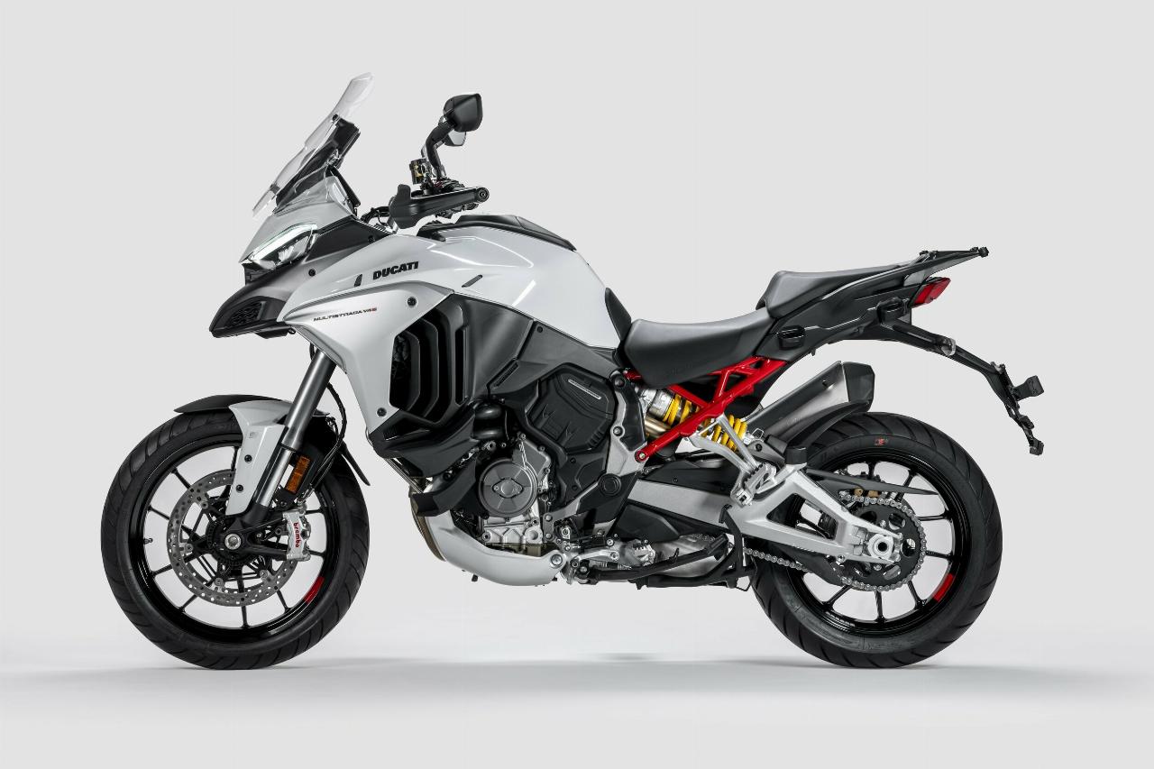 Das Zubehörangebot wird um ein Kofferset aus Aluminium erweitert, das zusammen mit dem Topcase ein Gesamtvolumen von 117 Litern bietet und zusammen mit Givi entwickelt wurde. Außerdem gibt es ein Tieferlegungs-Kit, das die Sitzhöhe sowohl beim niedrigen als auch beim hohen Sitz reduziert. Hinzu kommt als neue Farbvariante Iceberg White für die Multistrada V4 S. (aum)