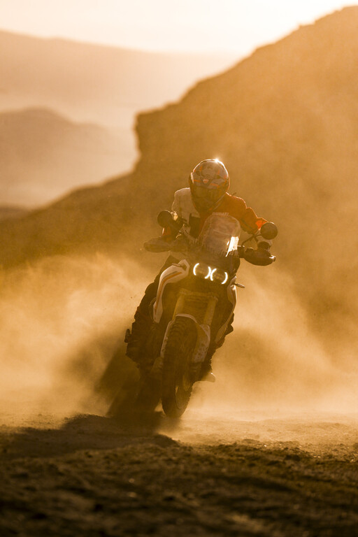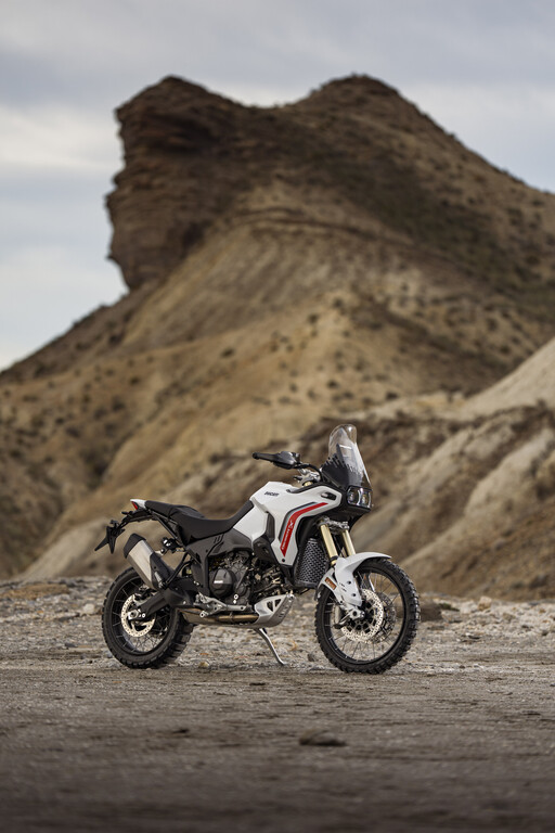 Der vordere Kotflügel ist im Vergleich zum Vorgängermodell höher positioniert. Dadurch entsteht mehr Abstand zum Reifen, sodass Schlamm und Schmutz im anspruchsvollen Gelände besser passieren können, ohne sich festzusetzen oder das Vorderrad zu blockieren. Einen Lenkungsdämpfer hat die Desert X ebenfalls.