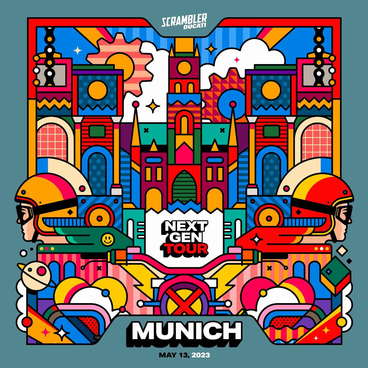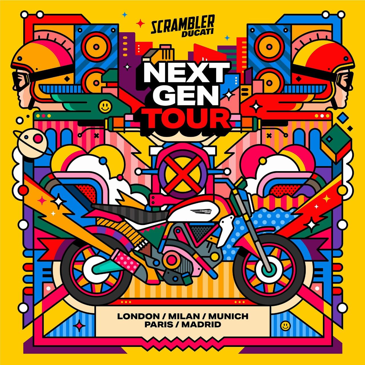 Auf einer „Scrambler Next-Gen“-Tour macht Ducati in fünf europäischen Städten Station, um die neu Scrambler-Generation vorzustellen. Mit dabei ist auch die von Van Orton Design entworfene Spezialversion der Scrambler Icon. Nach London und Mailand stoppt die Tour am 13. Mai in München in der Jochen-Schweizer-Arena. Neben den Probefahrten mit der in neun verschiedenen Farben erhältlichen Icon können die Teilnehmer Surfshows auf der ersten Indoorwelle Deutschlands erleben. Nach der Probefahrt können die Besucher selbst aufs Brett steigen. Ein Foodcourt, eine Bar, Lounges und DJs runden das Programm ab.
