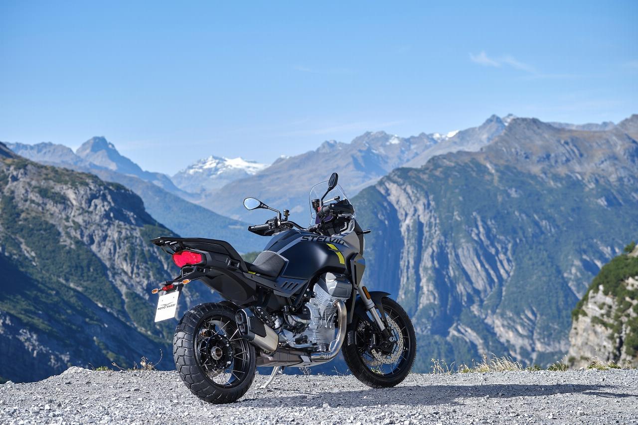 Mit dem Motor der V100 Mandello belebt Moto Guzzi einen alten Modellnamen wieder und stellt auf der Mailänder EICMA (–12.11.) die neue Stelvio vor. Die 115 PS (85 kW) starke 1,0-Liter-Reisenduro nimmt für sich in Anspruch, die einzige mit Kardanantrieb und elektrisch verstellbarem Windschild in ihrer Klasse zu sein. Ebenfalls mit an Bord ist Kurvenlicht. Die fünf Fahrmodie umfassen auch eine Offroad-Einstellung. Zudem bietet die Stelvio mit dem optionalem Radarpaket eine adaptive Geschwindigkeitsregelanlage, einen Kollisions- und einen Toter-Winkel-Warner. Erhältlich sein soll die neue Motoi Guzzi ab Februar wahlweise in Gelb oder Schwarz. Ein Preis wurde noch nicht genannt. (aum)