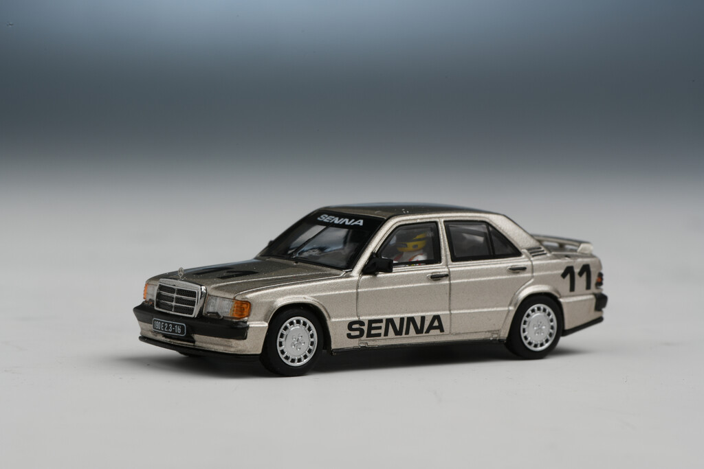 - Mercedes-Benz 190 E 2.3-16 „Senna“ in 1:64, Mini GT (1:24 und kleiner, 18,95 Euro)