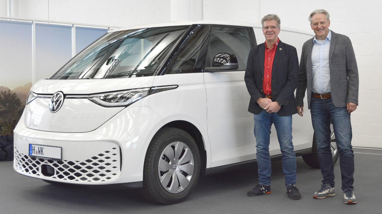 Im Kunden Center vor den Werkstoren in Hannover-Stöcken übergab Thomas Schulz, Leiter Verkauf Neuwagen, den ersten ID. Buzz Cargo1 an Unternehmer Wolfgang-Nils Kempe. Er ist Inhaber der Wolfgang Kempe GmbH, eines Komplettanbieters rund um Bad und Heizung aus Isernhagen. Der ID Buzz Cargo kommt sofort zum Einsatz. Direkt nach der Abholung wurde das Fahrzeug mit dem Unternehmenslogo beklebt und wird ab heute mit den Servicemitarbeitern im Großraum Hannover unterwegs sein. (aum)