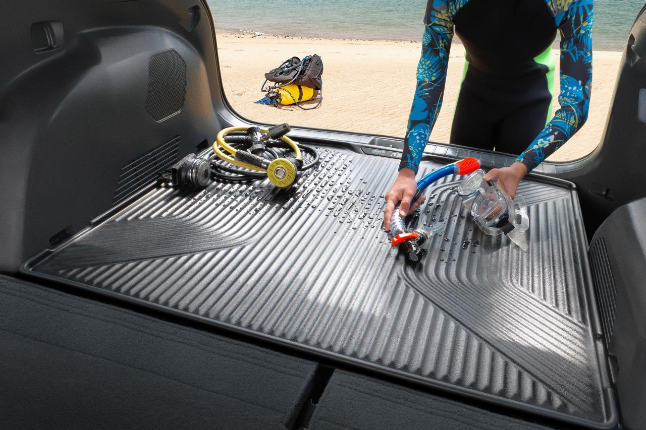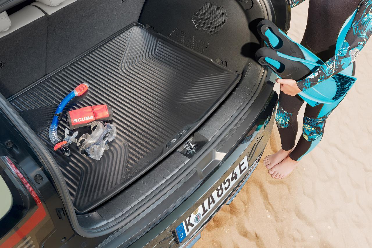 Kia unterstützt die Non-Profit-Organisation, die Technologien zur Befreiung der Weltmeere von Plastikmüll entwickelt und verbreitet, seit zwei Jahren. Die Kofferraumschale zeigt ein Muster geometrischer Wellen. Es ist eine Anspielung auf die Meere und das Treiben des Plastikmülls hin zu einem Sammelgebiet – und ein Hinweis auf das Verfahren, mit dem The Ocean Cleanup Kunststoff aus dem Meer zurückgewinnt. Die Schale besteht zu 40 Prozent aus