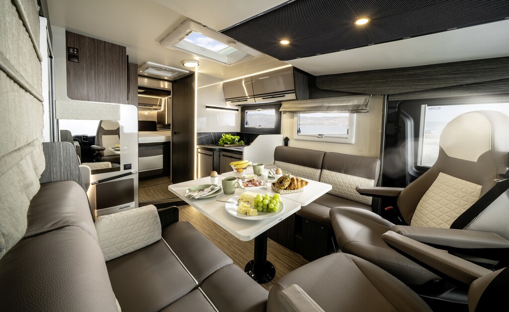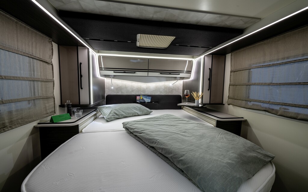 Die beiden 7,45 Meter langen integrierten Modelle sind in zwei Grundrissen verfügbar und nutzen den Fiat Ducato als Basis. Hier stehen zusätzlich zum Hubbett über den drehbaren Sitzen für Fahrer und Beifahrer entweder ein Queensbett oder Einzelbetten im Heck zu Wahl. Die Preise der luxuriösen Liner liegen bei 79.900 Euro. (aum)