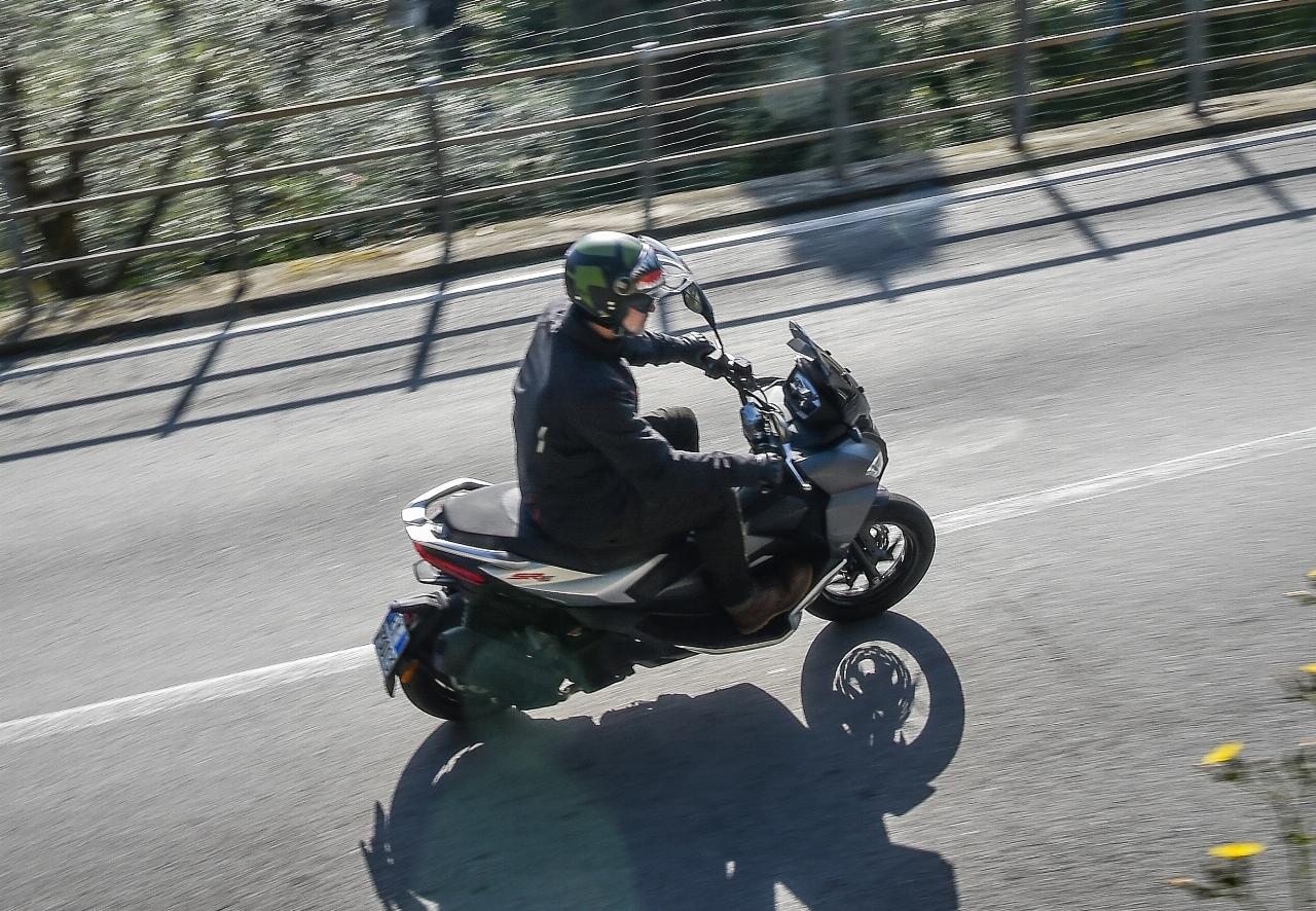 2,5 Liter auf 100 Kilometer gibt Aprilia als Verbrauch an. Das beruhigt beim Blick auf die explodierenden Treibstoffpreise. Bei der mehrstündigen Testfahrt an der ligurischen Küste flossen laut Bordrechner im Schnitt 2,9 Liter durch den Einzylinder mit abschaltbarer Start-Stopp-Automatik. Neun Liter passen in den Tank, macht 300 Kilometer Reichweite ohne Zwischenstopp. Fahrer oder Fahrerin samt Sozia oder Sozius sitzen komfortabel auf einem erfreulich festen Zwei-Personen-Polster. Die Fußrasten für Mitfahrende tarnen sich bei Solobesetzung als Teil der Verkleidung. Die Trittbretter sind ausreichend lang bis Schuhgröße 47. 1350 Millimeter Radstand und kompakte 1920 Millimeter Gesamtlänge setzen der Beinfreiheit natürliche Grenzen: Zum Ausstrecken der Gräten hinterm Beinschild reicht es bei knapp 1,80 Meter Körpergröße nur bedingt. Die Sitzhöhe misst passable 799 Millimeter