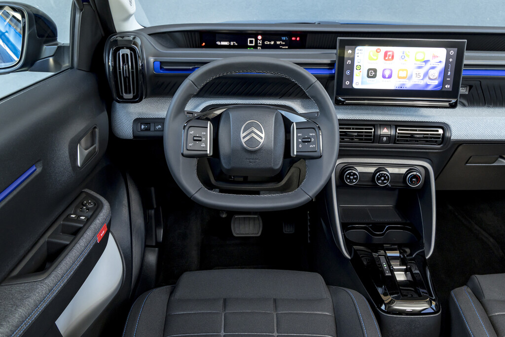 Und es gibt noch eine kleine Nickeligkeit. Citroën reduziert nicht nur die Batteriekapazität, sondern auch die Ladeoptionen. Serienmäßig ist ein einphasiger 7,4-kW-Onboard-Charger verbaut. Das klingt zwar zunächst brauchbar, in Deutschland stößt diese Lösung im Alltag aber schnell an praktische Grenzen, weil an vielen privaten 11-kW-Wallboxen einphasig effektiv nur 3,7 kW anliegen. Dann verlängern sich die Ladezeiten deutlich. Ein dreiphasiger 11-kW-Onboard-Charger ist zwar erhältlich, kostet aber 400 Euro extra. Ebenfalls optional ist der DC-Schnelllader, für den Citroën weitere 500 Euro aufruft. Damit relativiert sich der günstige Einstiegspreis, weil Funktionen, die zur Alltagsausstattung eines E-Autos gehören, nicht serienmäßig an Bord sind.
